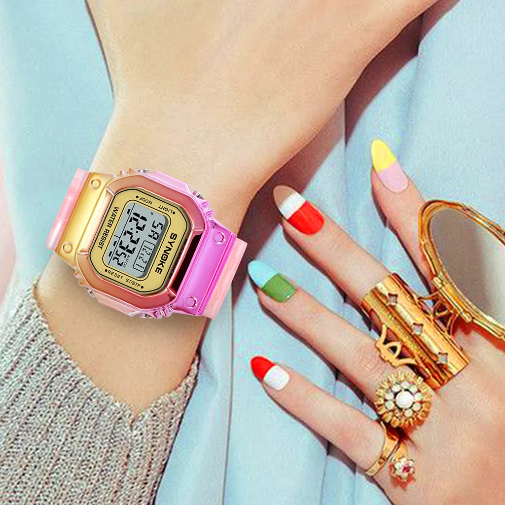 The SYNOKE Colorful Chameleon Electronic Watch is a vibrant and durable timepiece designed for kids and young adults who love bold, functional accessories. With its dynamic color-shifting design, this watch stands out as both a fashion statement and a practical tool for everyday use. Whether you're heading to school, sports practice, or just hanging out with friends, this watch combines style, reliability, and fun into one eye-catching package.
