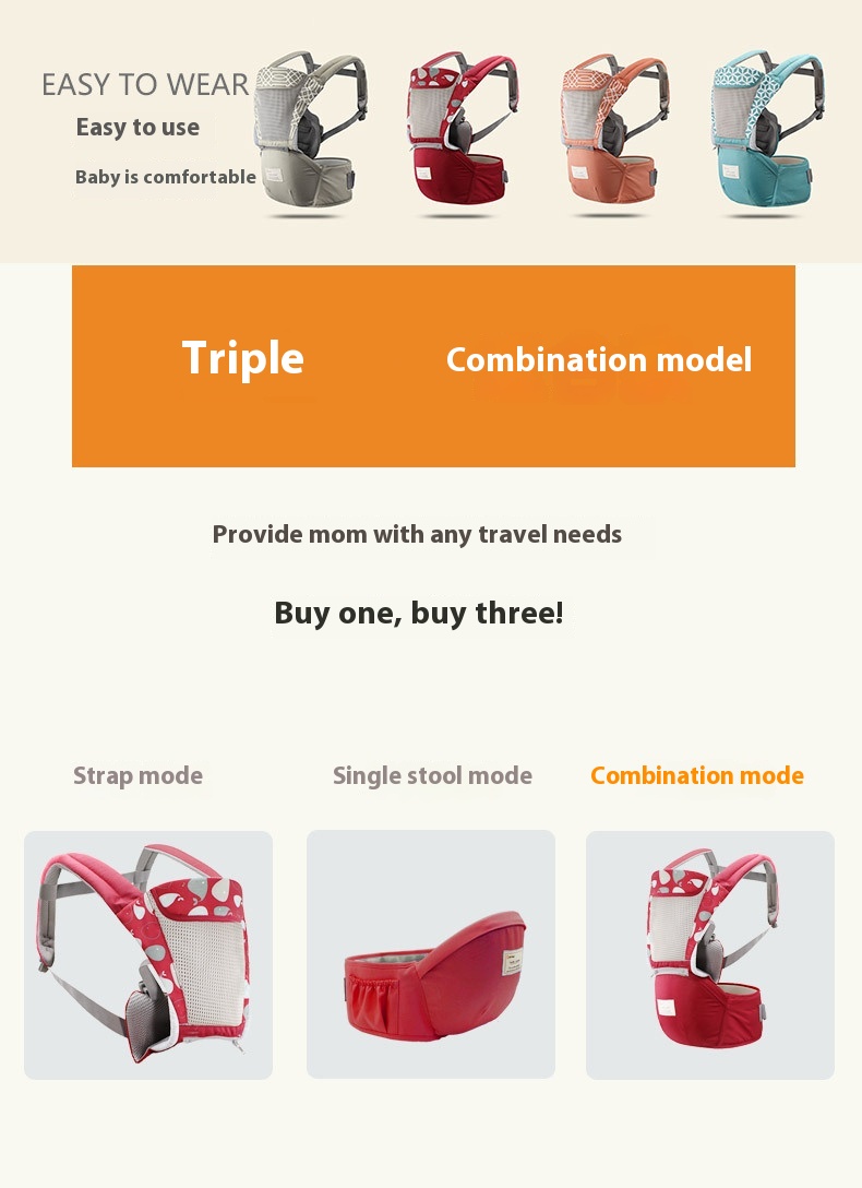 - 🍹Portabebés multifuncional: Diseño desmontable, tiene 3 métodos de uso: portabebés, asiento de cadera para bebé, portabebés con asiento de cadera. Posiciones de transporte ergonómicas, aplicables a diferentes situaciones.