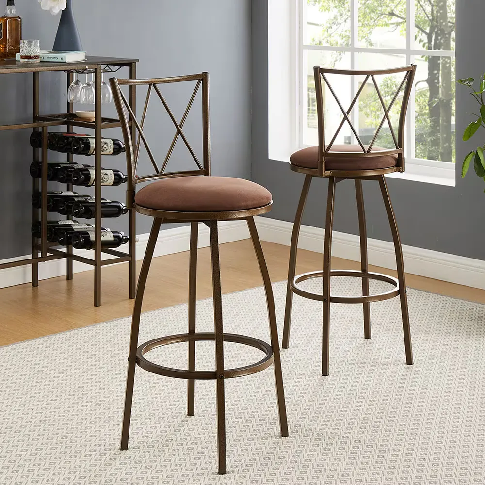 Taburetes de bar de 2 piezas, sillas de bar, taburetes marrones de estilo rústico industrial, fáciles de montar, con reposapiés para bar, comedor, cocina interior.