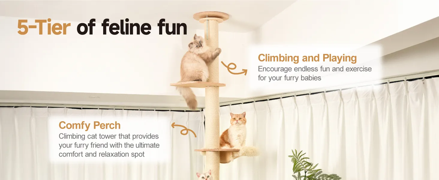 Physical and Mental Stimulation: The multiple levels of a tall cat tree encourage climbing, jumping, and playing, which