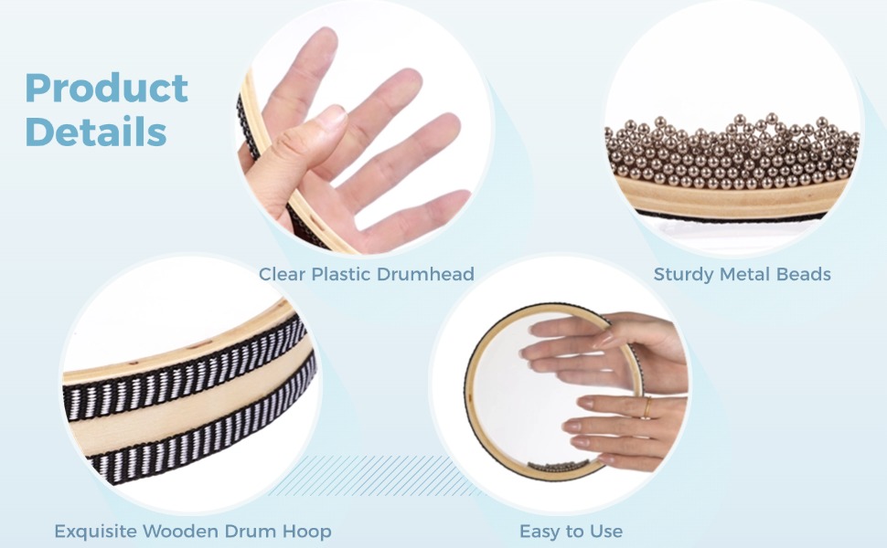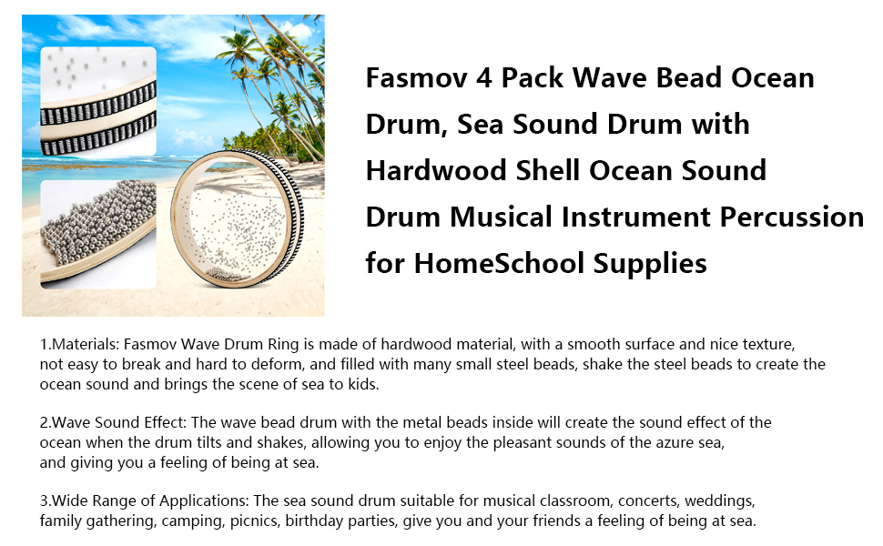 • Confiable y de larga duración: el tambor de olas presenta una construcción robusta y sólida; El anillo del tambor está hecho de material de madera dura, con superficie lisa y textura agradable, no es fácil de romper y difícil de deformar, y está lleno de muchas pequeñas cuentas de acero, firmes y resistentes para que usted use