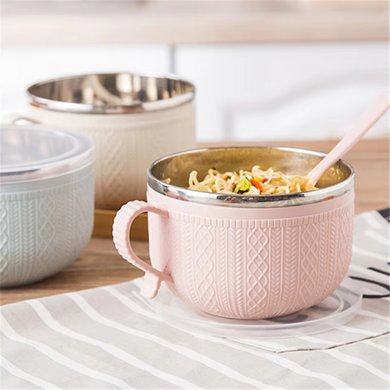 Tazón de fideos ramen de doble capa de acero inoxidable anti-escaldado instantáneo