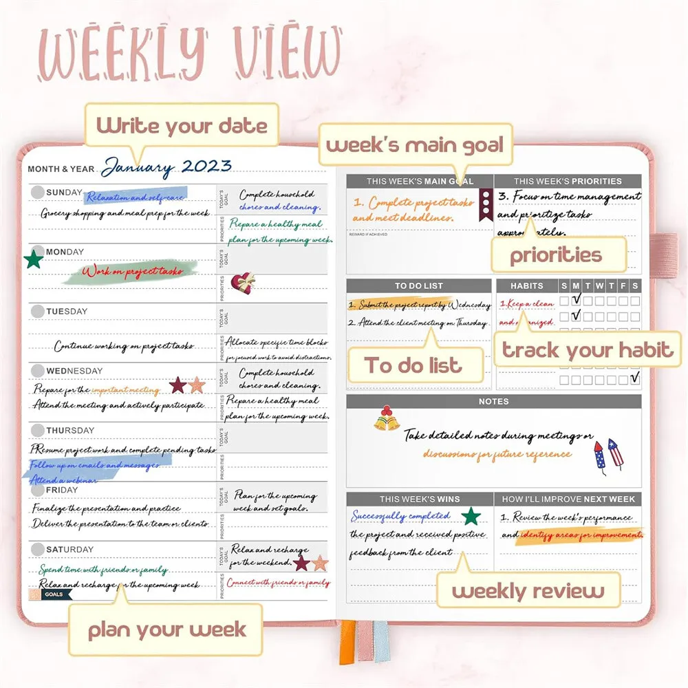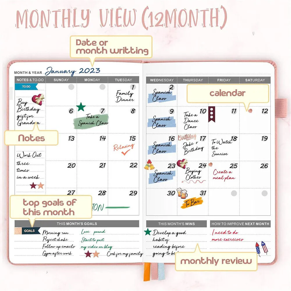 1x Undated Planner Weekly and Monthly Appointment Book for Time Management with Stickers