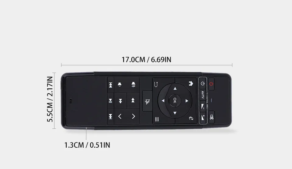 - Diseño multifuncional: Combina un control remoto, un teclado y un mouse en un solo dispositivo compacto.