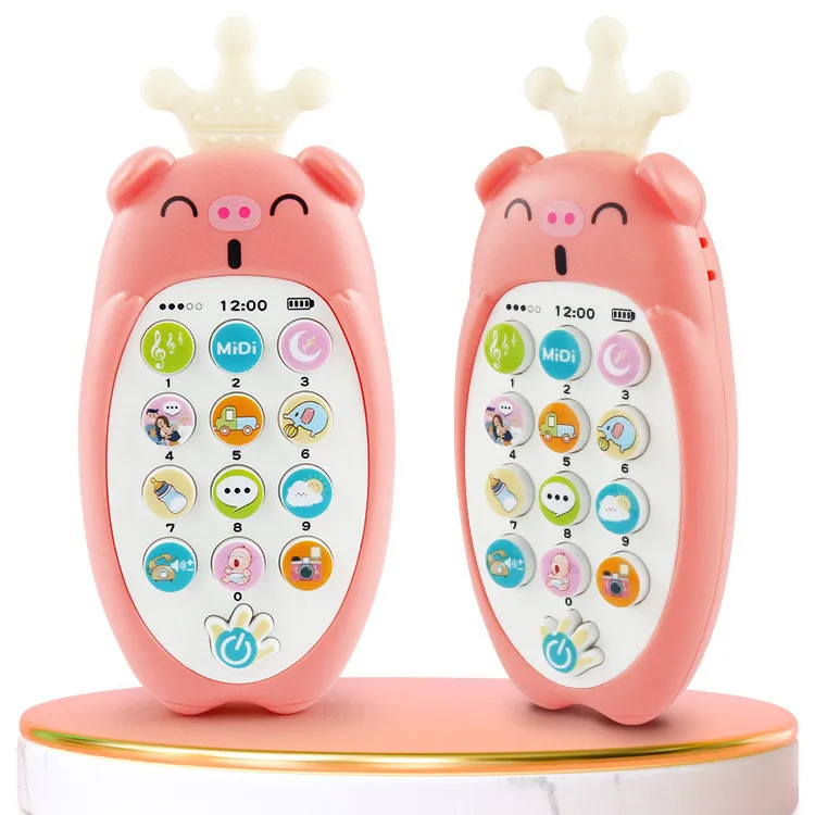 Teléfono móvil con música para iluminar a bebés, juguetes creativos de educación temprana que pueden morder rábanos.