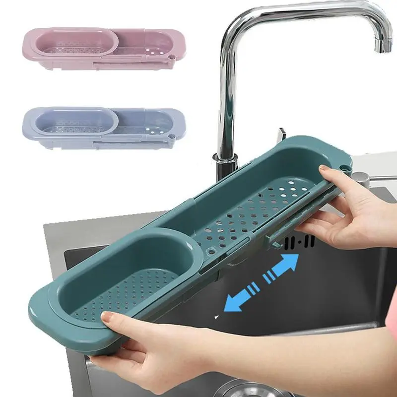 Telescopic Sink Rack Soap Sponge Holder Kitchen Sinks Organizer Adjustable Sinks Drainer Rack Storage Basket Kitchen Accessories
