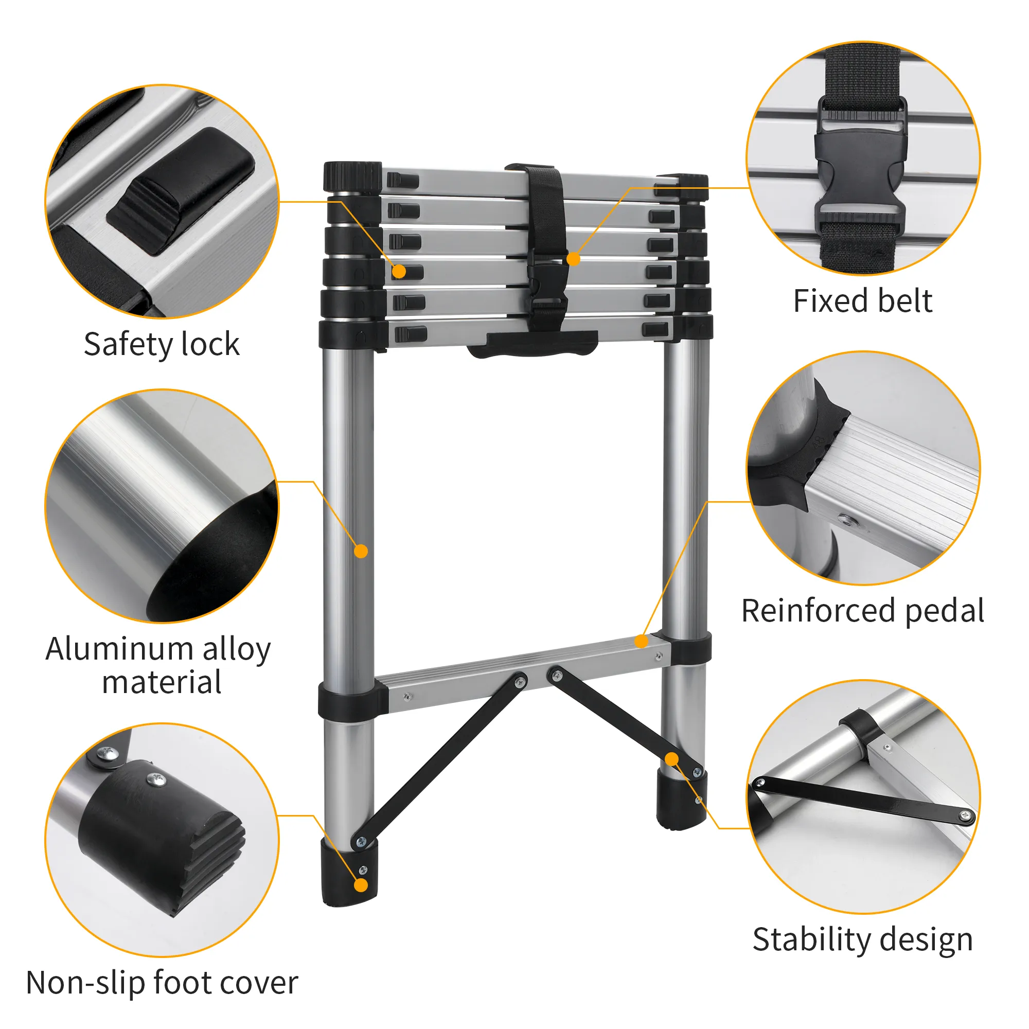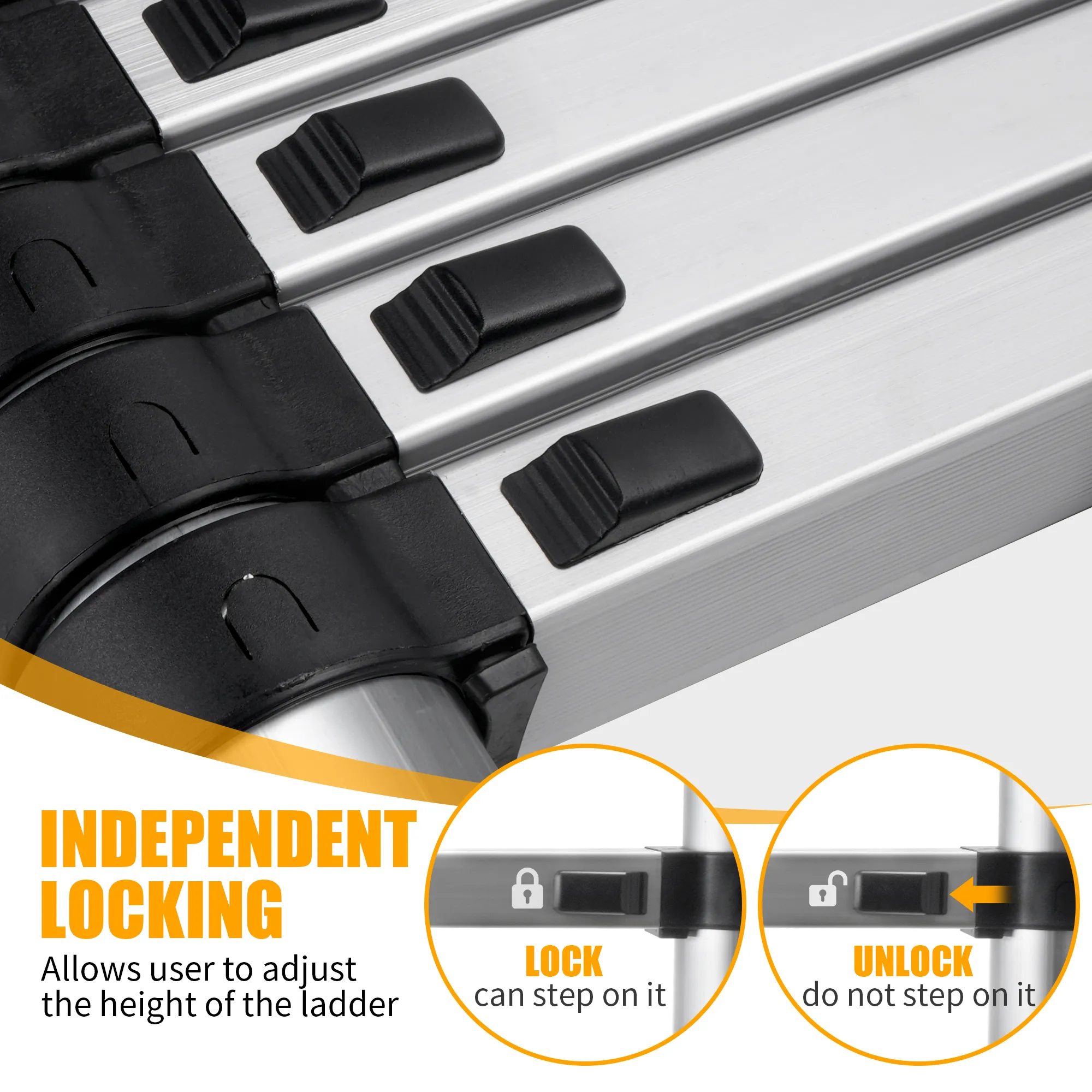 The ladder features an extendable design, allowing you to adjust the length in small increments, giving you the perfect height for every task. When not in use, it can be collapsed down to a fraction of its extended size, allowing for easy storage and portability. With its non-slip feet and sturdy locking mechanism, this ladder ensures safety during use, giving you peace of mind whether you're working on a ladder for the first time or the hundredth time.