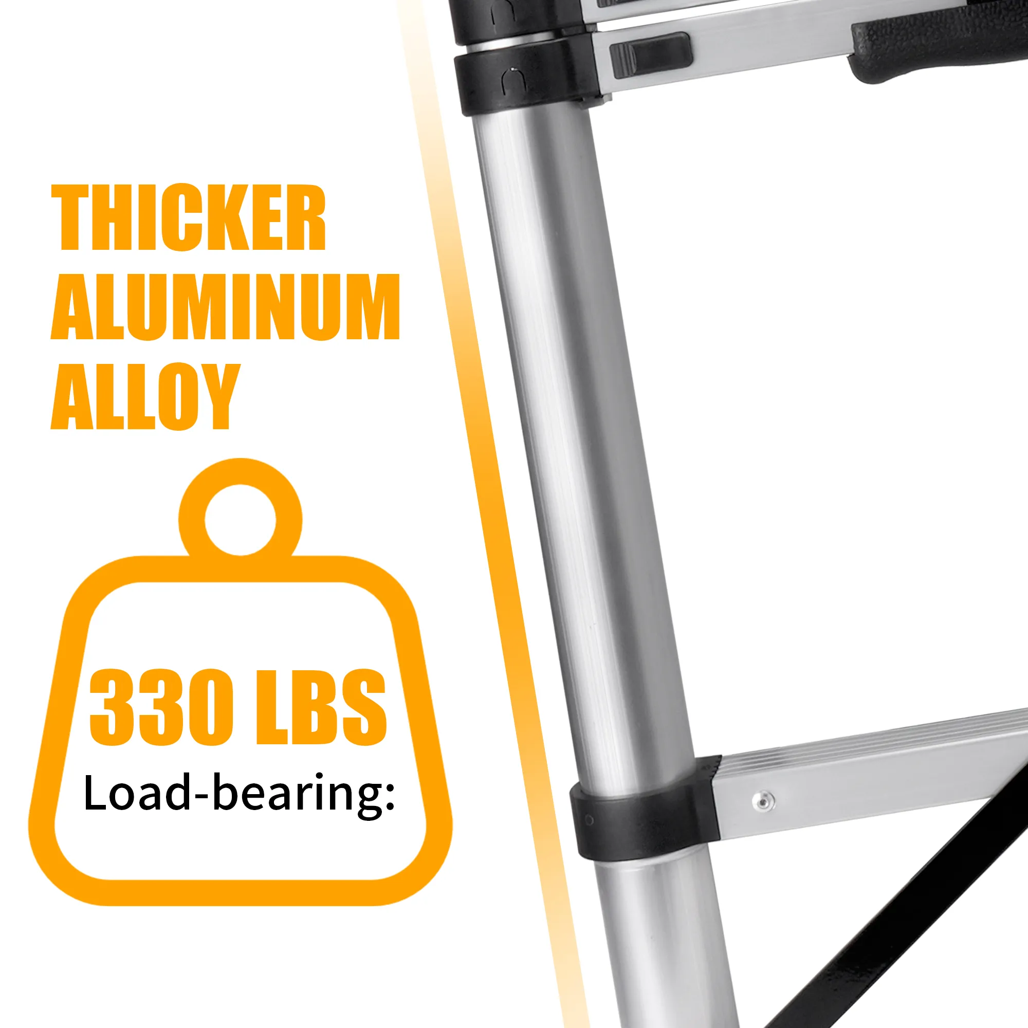 - 【Durable Aluminum Alloy】The telescoping ladder is made of high strength aluminum alloy with anodized that resists rust waterproof and ensures long-lasting. It’s lightweight, sturdy, stability, convenient to use, store and carry around. Max load 150kg/330lb.
