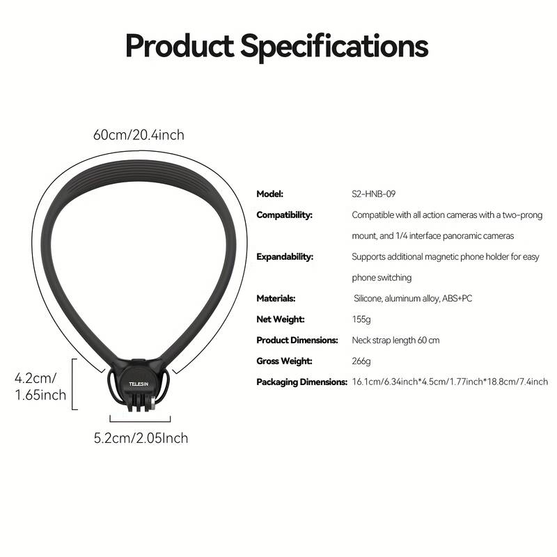 Made from durable aluminum alloy, the Halter Se 2.0 offers a lightweight yet sturdy construction, ensuring it can withstand outdoor activities like hiking, cycling, and vlogging. The air cushion design provides extra comfort, reducing pressure during extended use, while the adjustable straps allow for a customizable, snug fit. Whether you're shooting adventure videos, vlogs, or action-packed moments, the TELESIN Halter Se 2.0 is the perfect tool to capture immersive, hands-free footage.