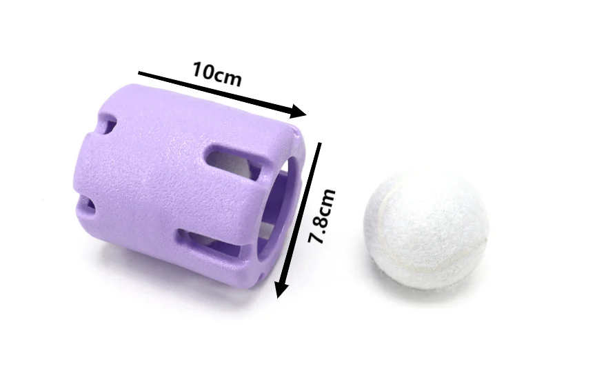 tough for pups to retrieve. The cylinder shape makes it perfect for rolling and paw pushing, while the slatted walls