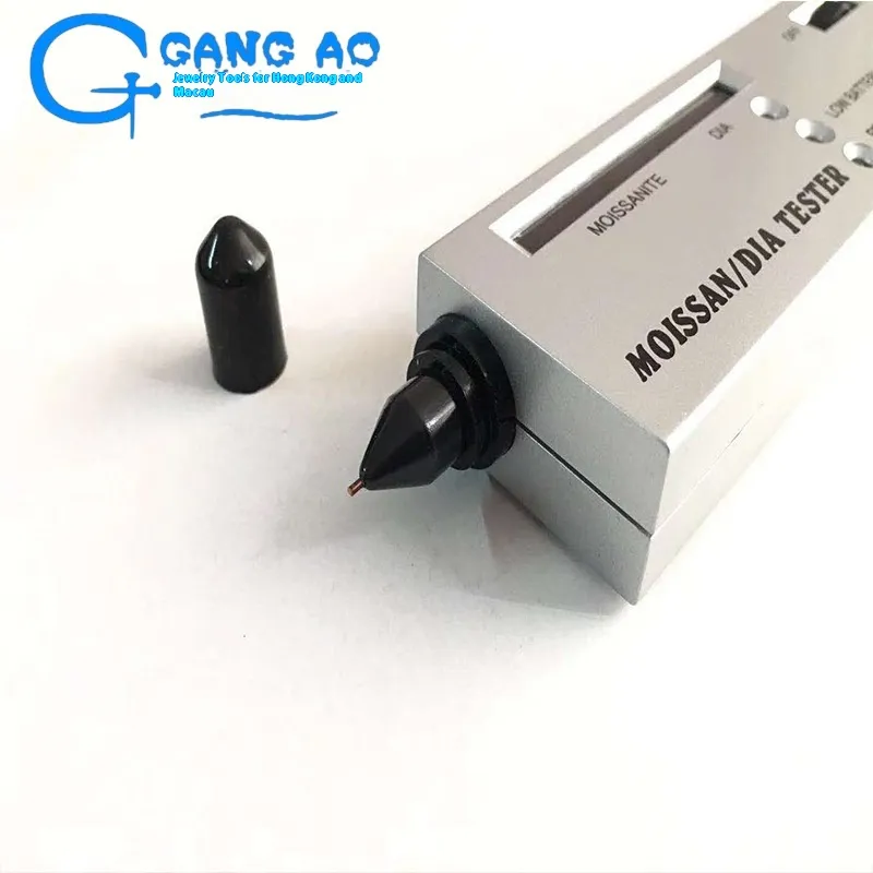 distinguish between diamonds, moissanite and other simulants. The unit presents a probe (often ~0.6 mm tip) that you touch to the stone’s