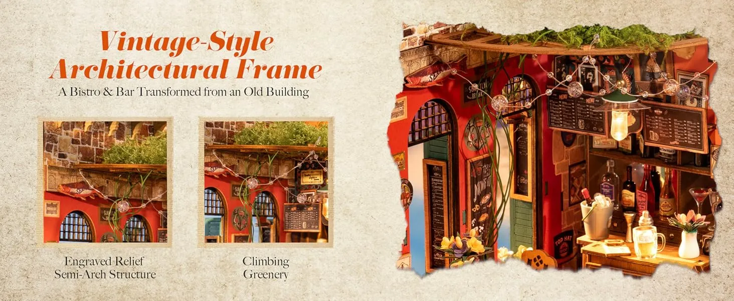 • Nostalgia in Every Detail: Embossed stone textures, stained-glass acrylic windows, and wrought-iron lattices