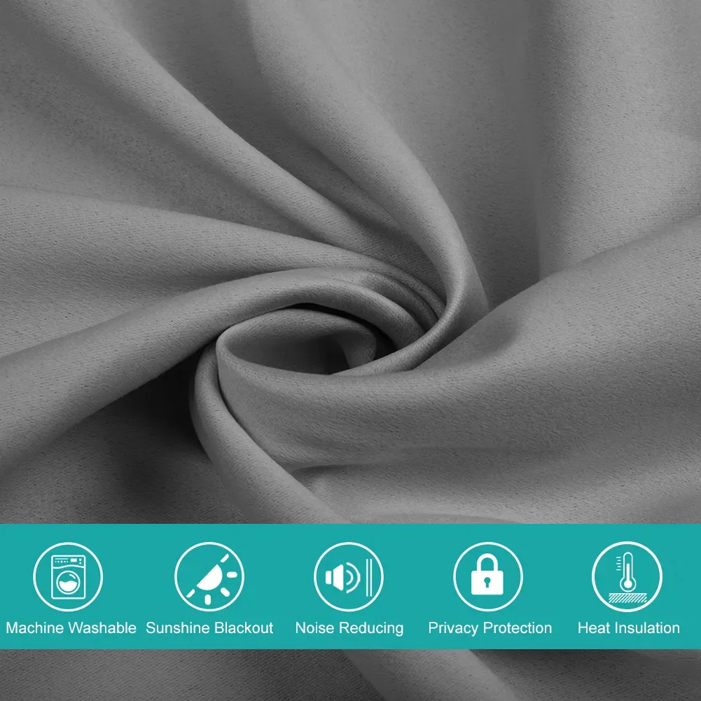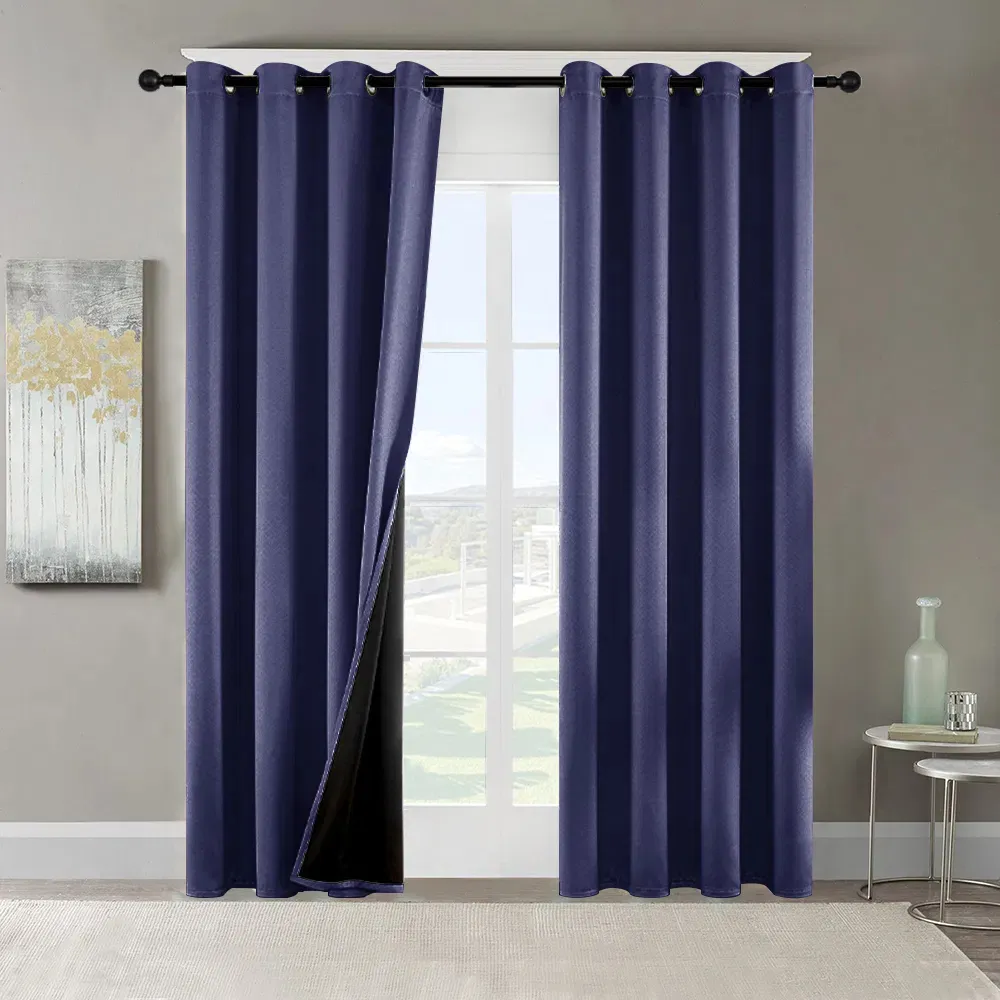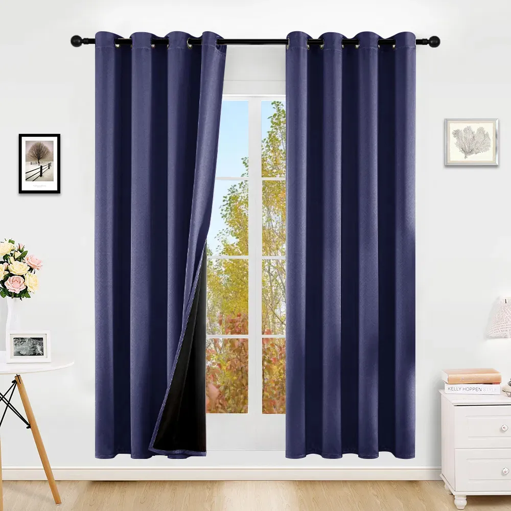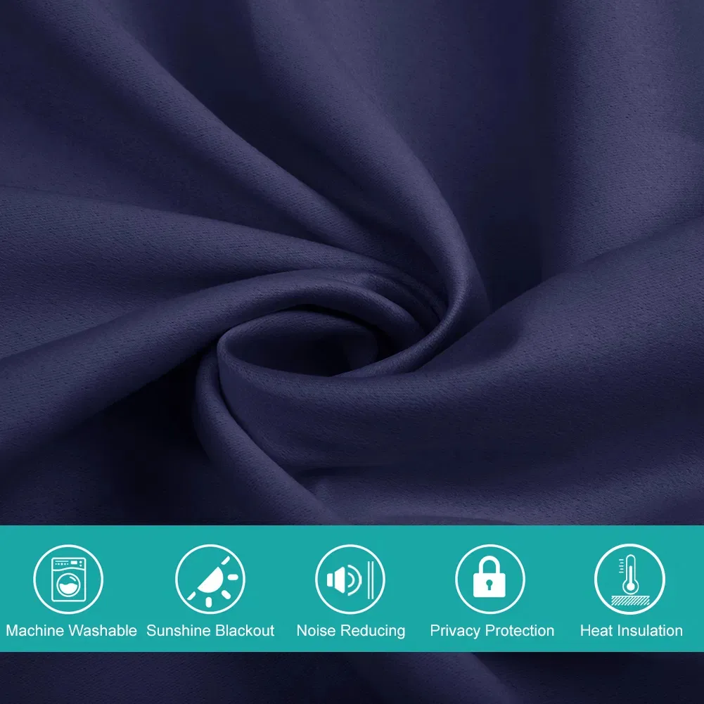 This polyester blackout curtain set (2 panels, 52"x84") comes in beige, gray, navy, with grommets, thermal insulation, ideal for indoor light blocking.