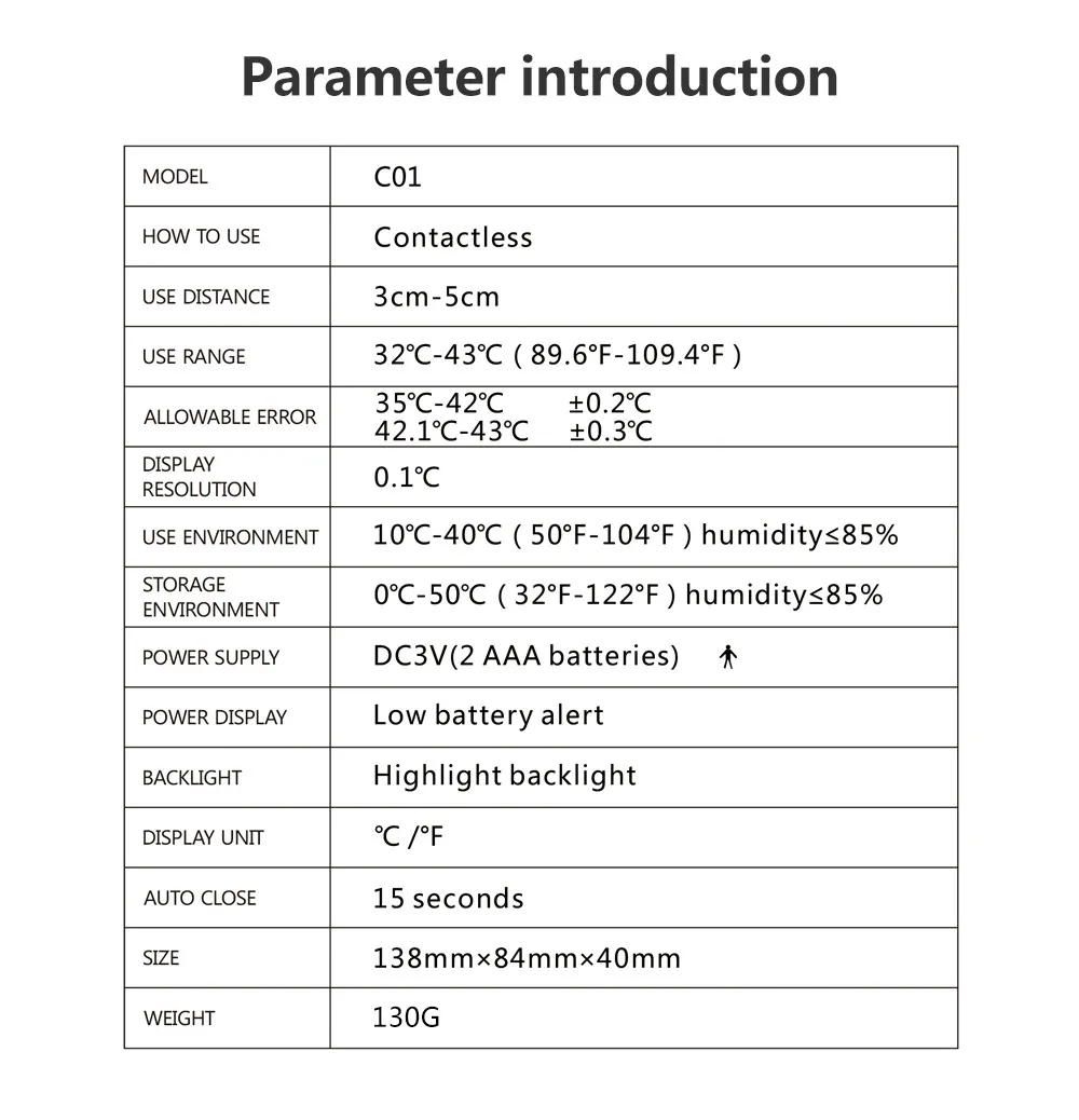 2. One button measurement for easy, non-contact use to prevent cross infection.