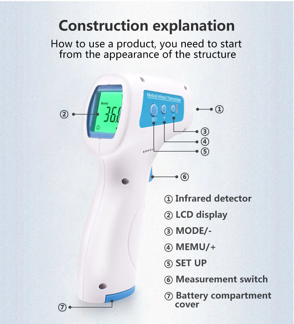 5.High precision electronic infrared temperature measuring instrument, suitable for infants, children, adults.