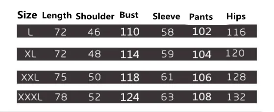 Available in sizes ranging from L to 3XL, the suit is designed to accommodate various body types. The relaxed fit ensures comfort without being overly loose, allowing for easy movement. Please refer to the size chart provided by the retailer to select the appropriate size.