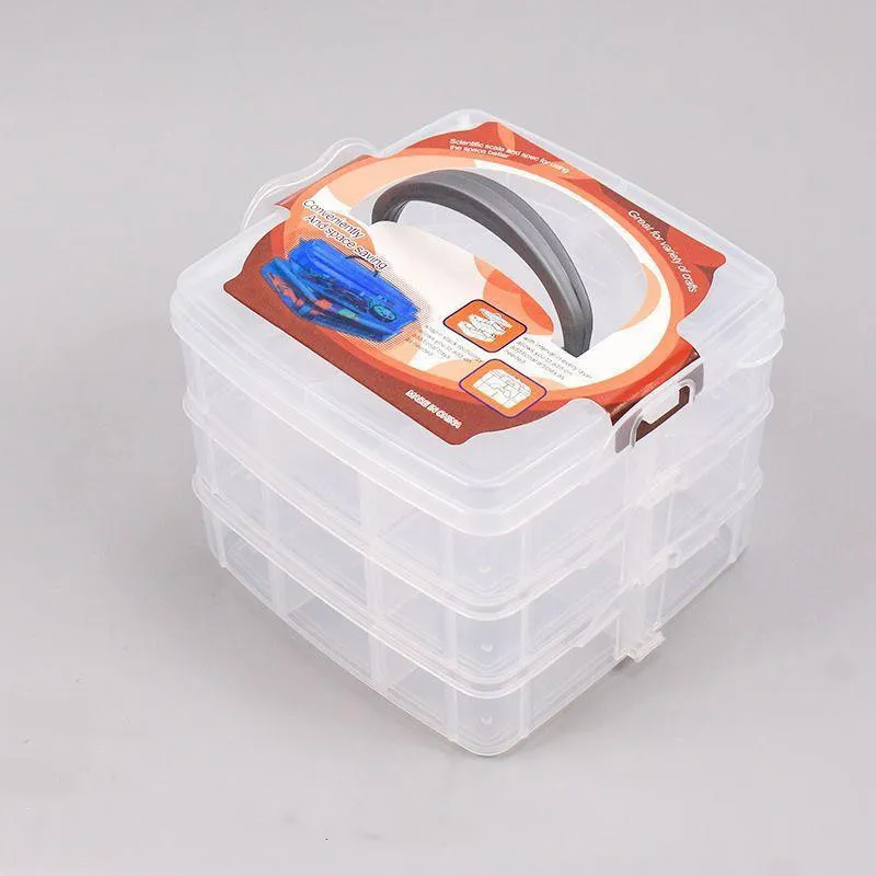 The three-layer transparent plastic storage box is a practical and stylish way to organize your belongings at home, office, or workshop. Designed with durable clear plastic, this storage box allows you to easily see the contents of each layer without opening it, saving time and effort when searching for items.