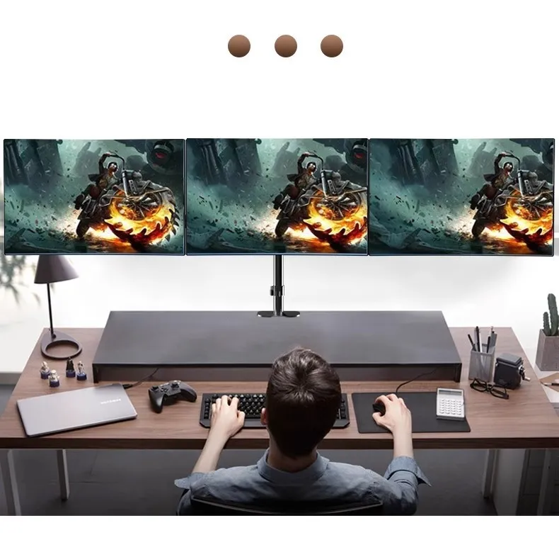Upgrade your workspace with the Three-Screen Monitor Stand, designed to hold up to three monitors while providing sturdy support and ergonomic positioning. Perfect for gaming setups, professional workstations, or multitasking environments, this stand improves desk organization and viewing comfort.