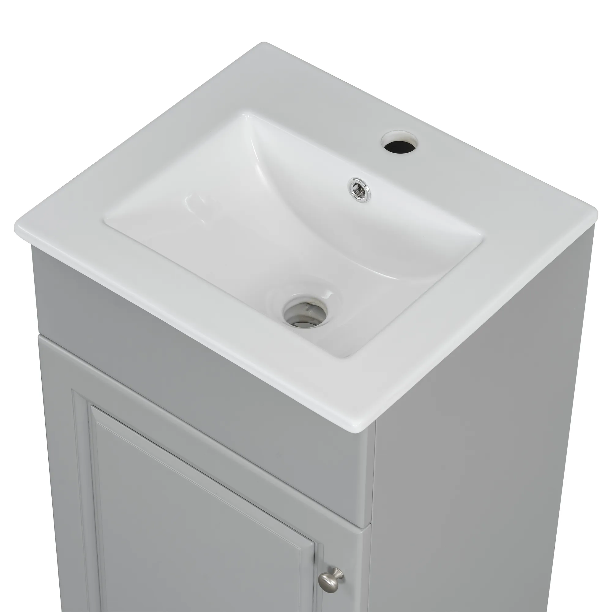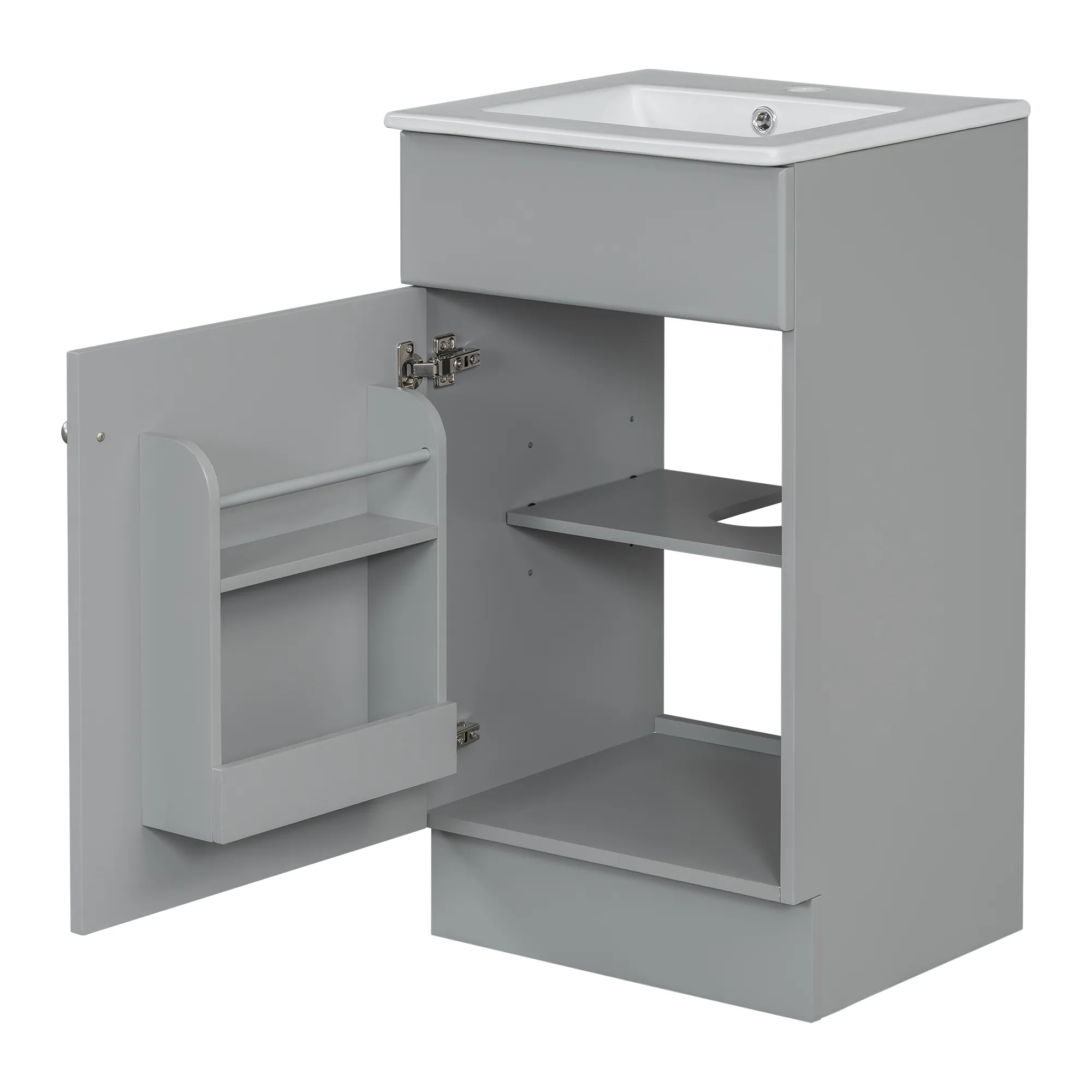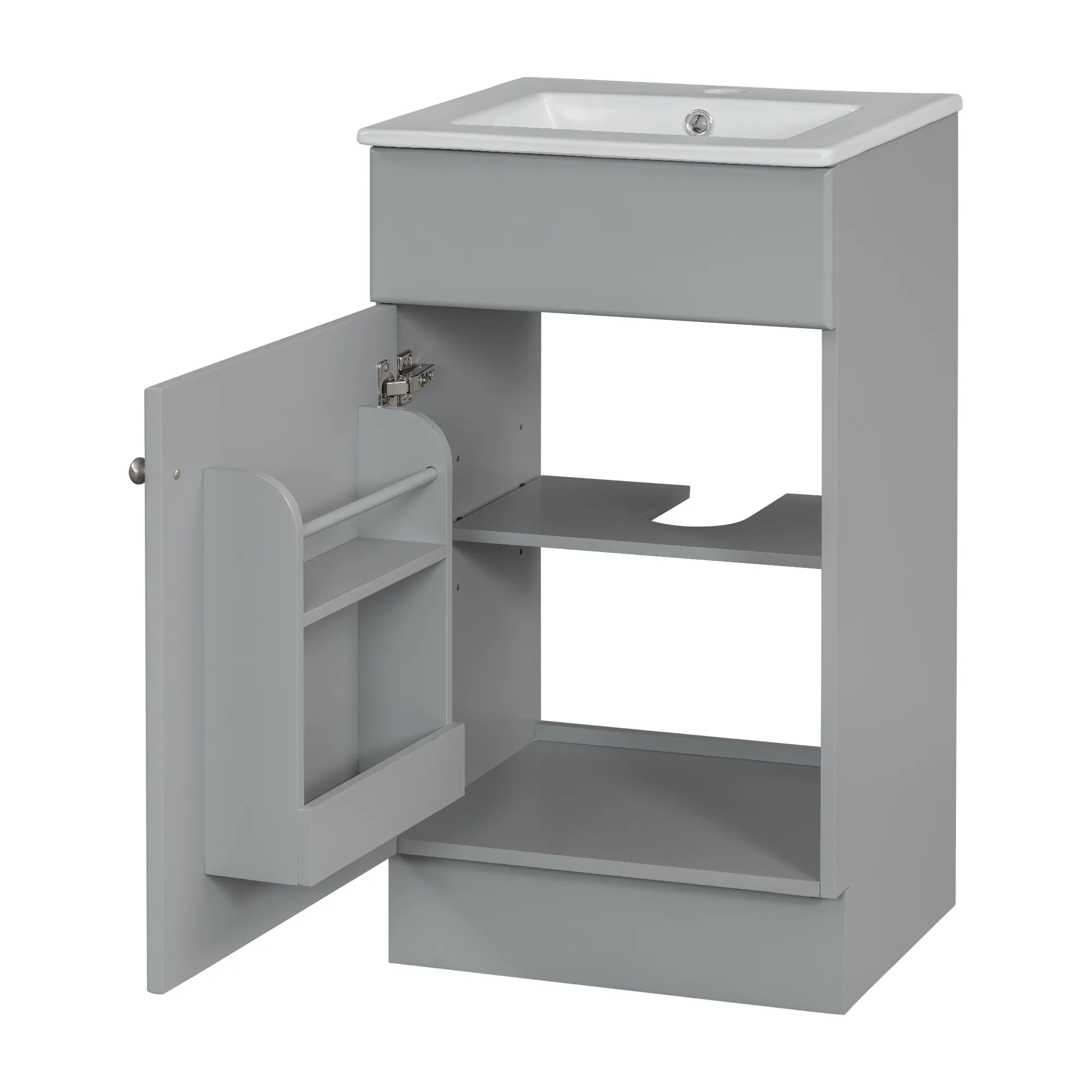 Product Name:[Video] 18" Bathroom Vanity with Sink, Vanity Cabinet with Door Shelf and Adjustable Shelf, Grey