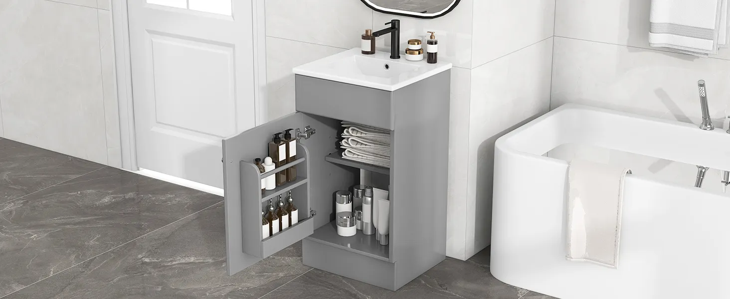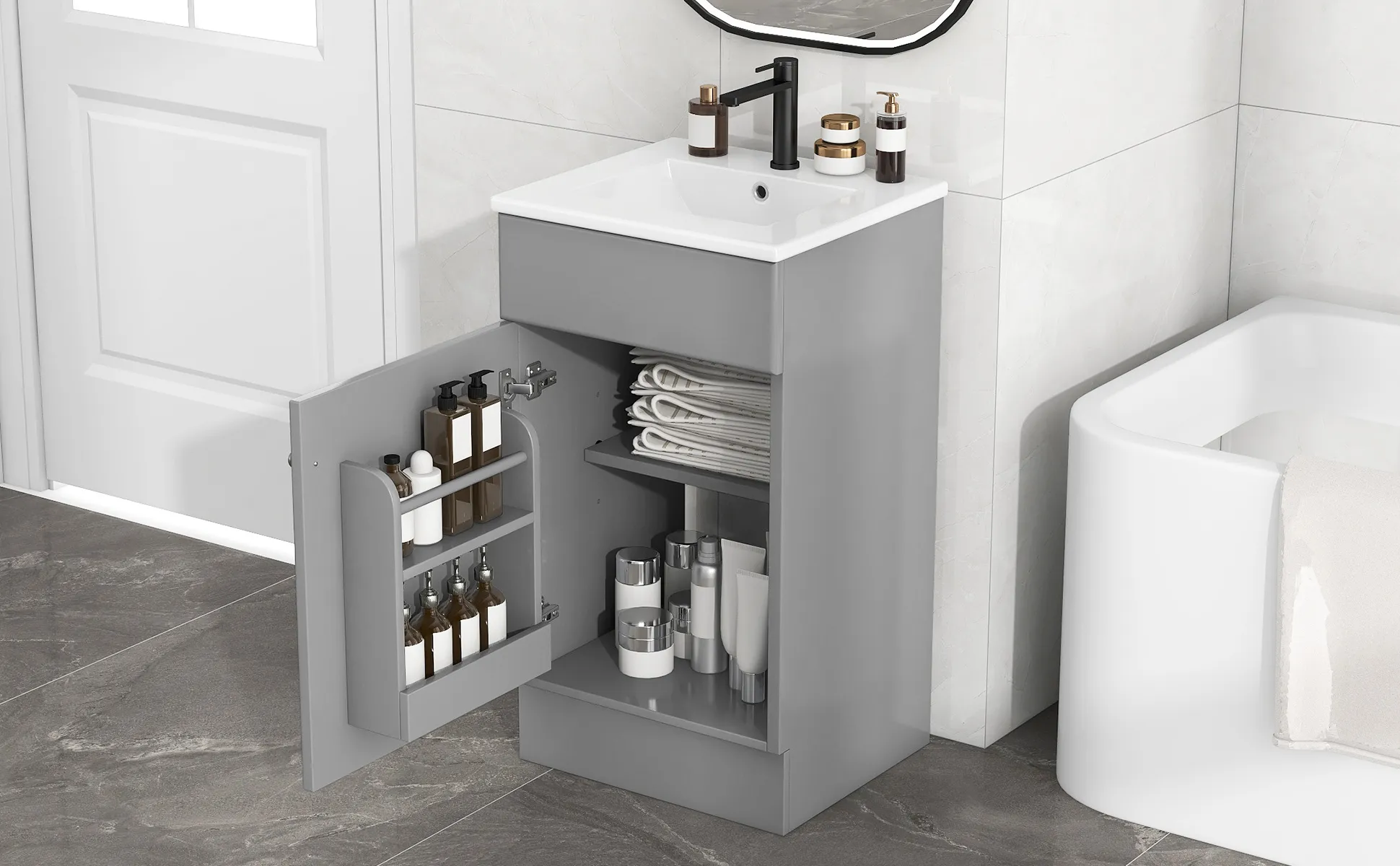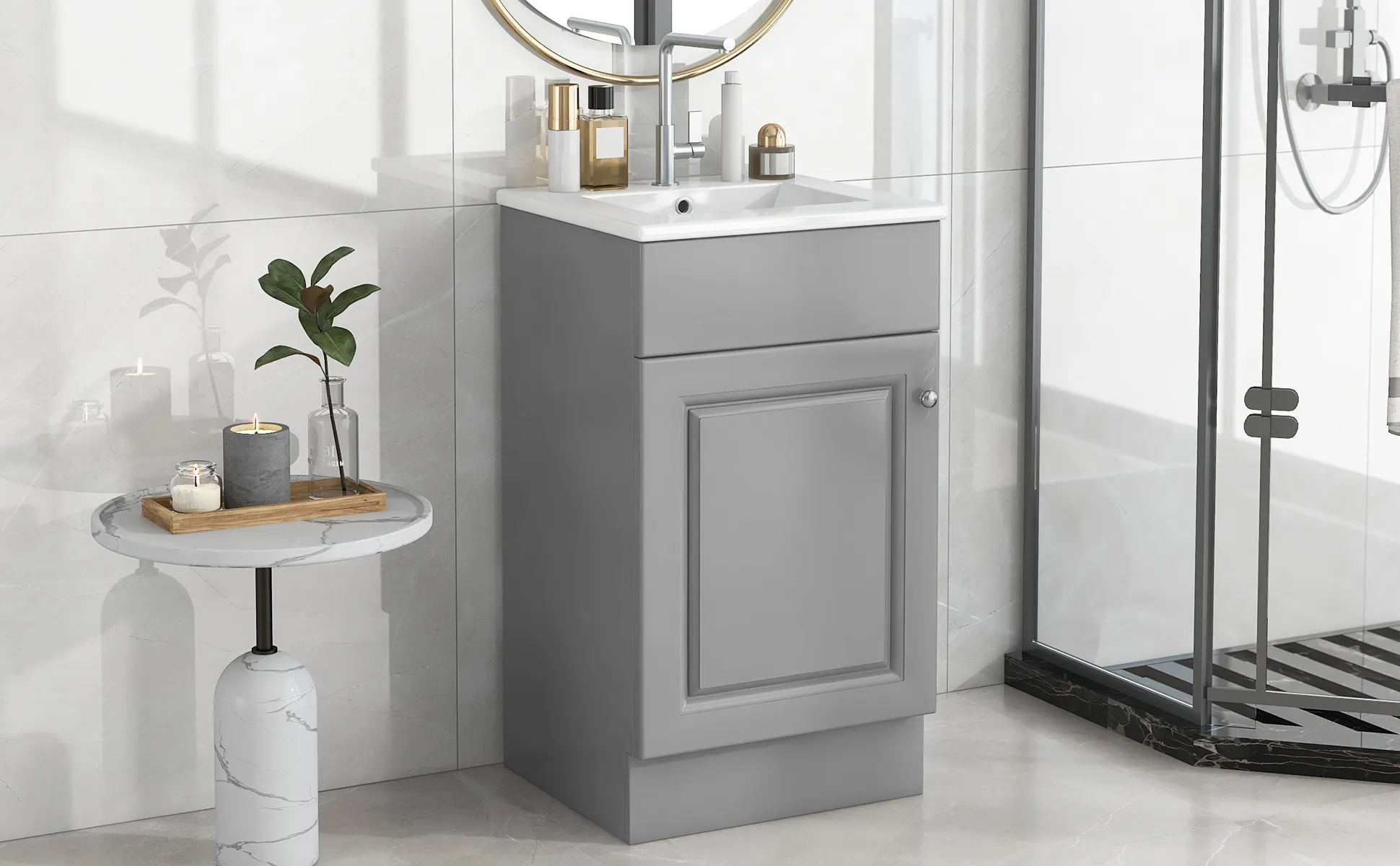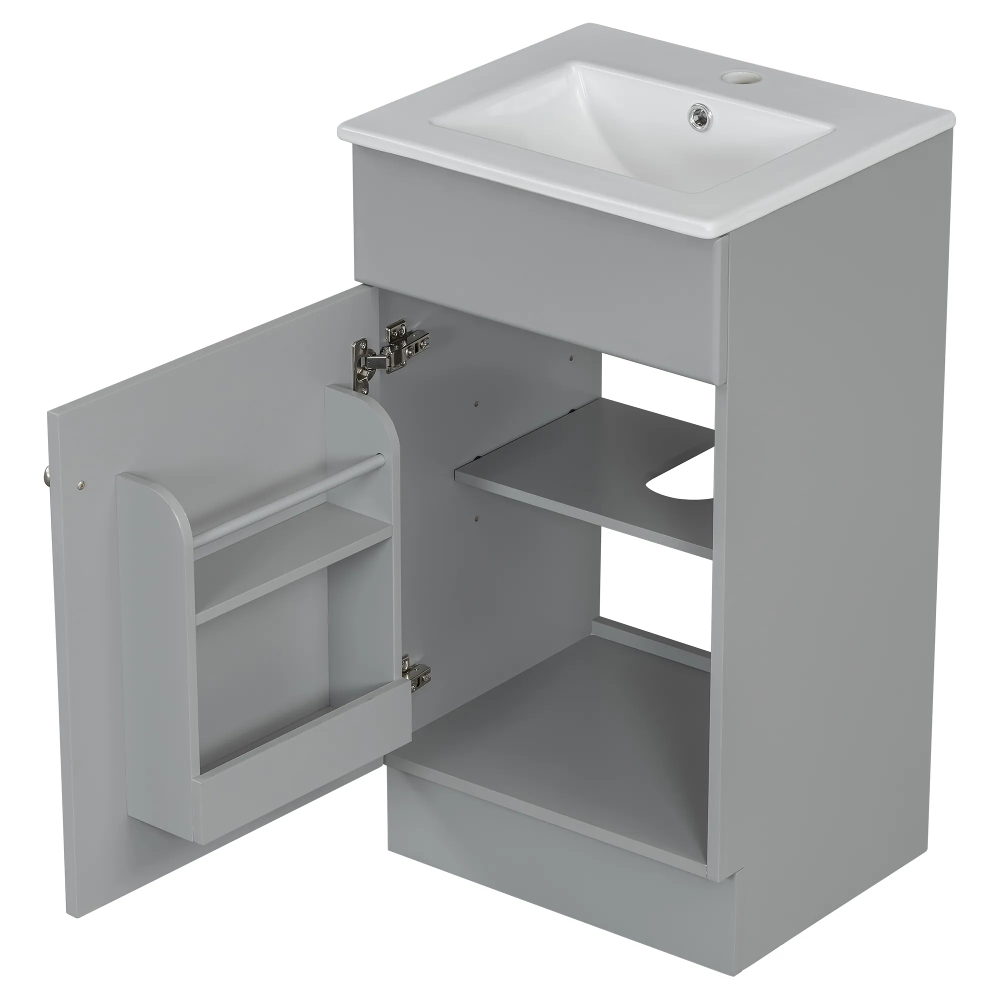 Product Name:[Video] 18" Bathroom Vanity with Sink, Vanity Cabinet with Door Shelf and Adjustable Shelf, Grey