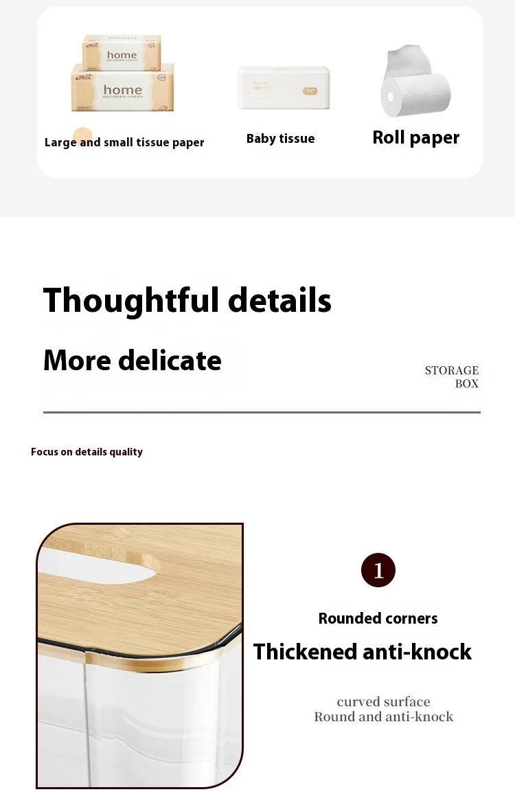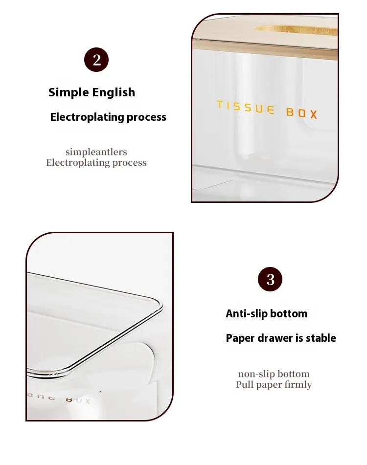 Feature 2: Durable Construction – Made from high-quality materials like wood or plastic, the tissue box is built to last. Its robust construction ensures it withstands daily use without losing its aesthetic appeal.