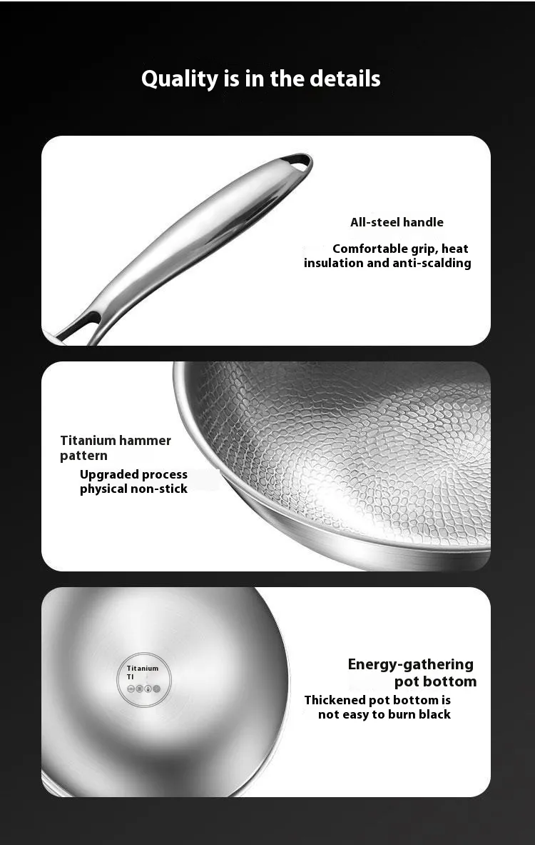 The Titanium Alloy Household Flat Bottom Wok is designed to provide excellent cooking performance, whether you're making stir-fries, braised dishes, or stir-fried rice. The flat bottom allows for even heating, so your food cooks quickly and uniformly without burning or undercooking certain areas.