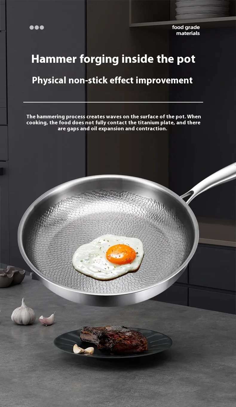 Constructed using titanium-enhanced material, the pan offers exceptional strength and resistance to wear. The hammered surface is not only visually striking but also functional—helping distribute heat more evenly across the cooking surface. This supports consistent results and reduces hot spots that can lead to uneven cooking.