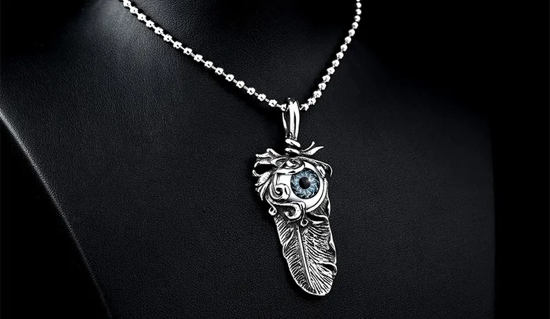 Titanium steel evil eye pendant feather pendant
