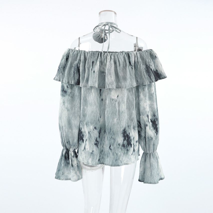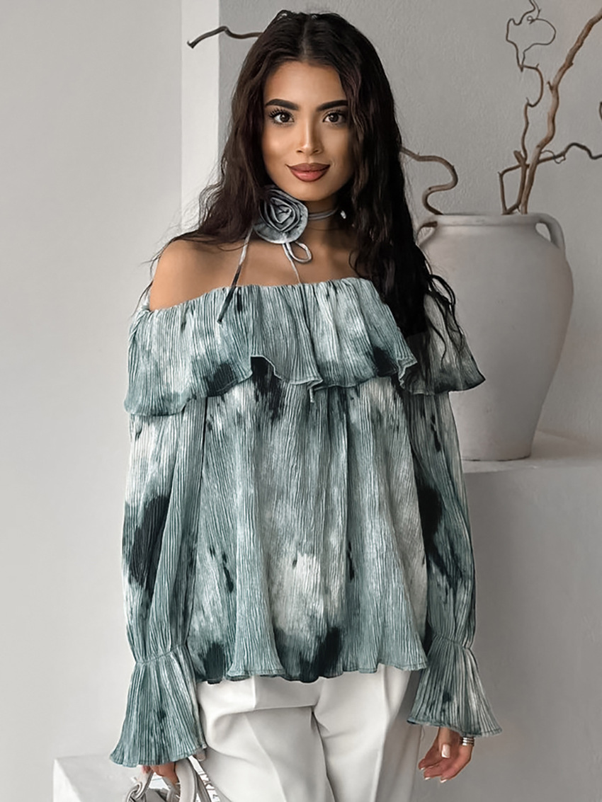 Top con hombros descubiertos y cordones con diseño de pintura de tinta para mujer