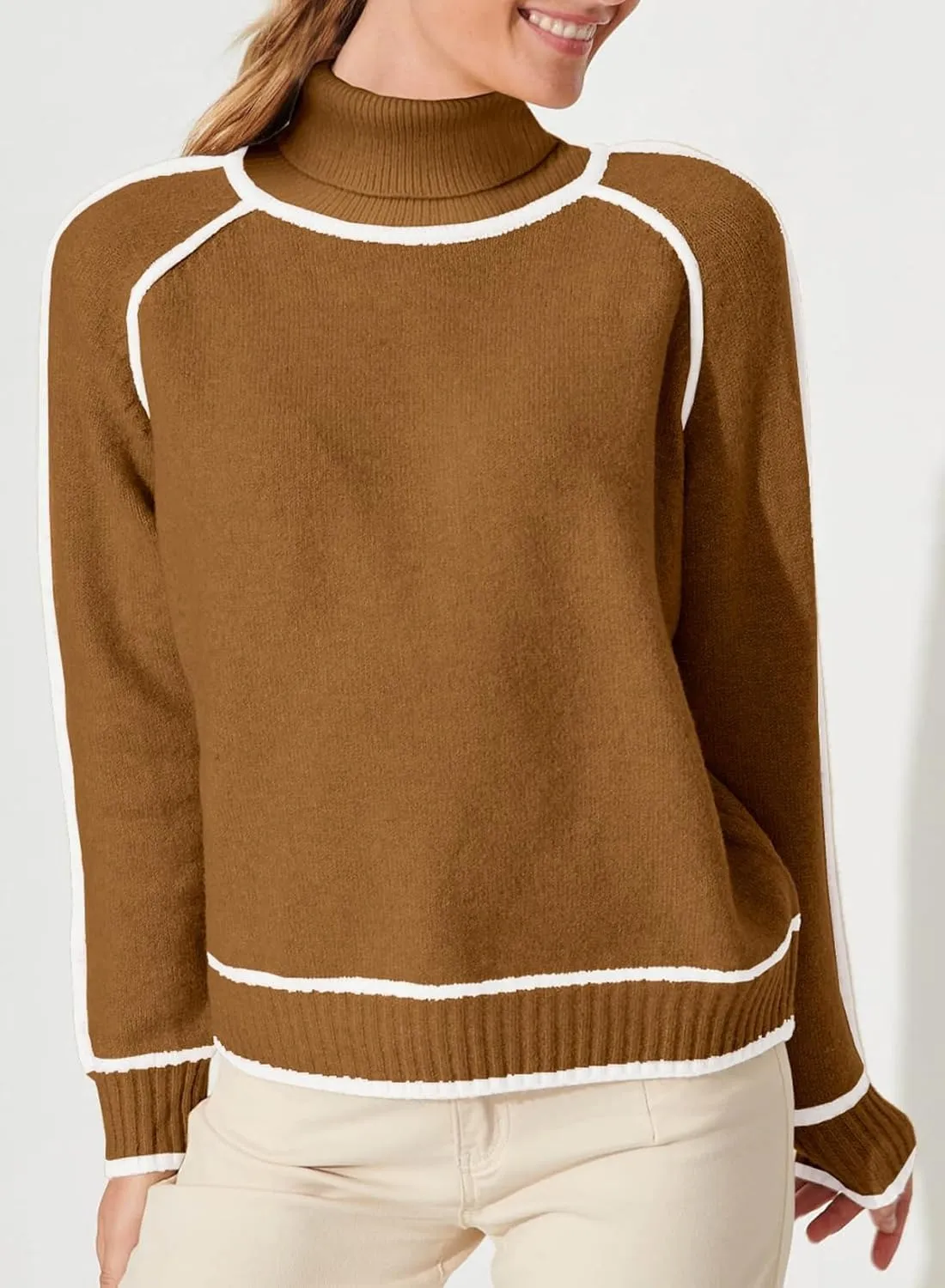 Este top de punto de color liso y cuello alto ofrece estilo y comodidad, lo que lo convierte en una prenda versátil para cualquier armario de otoño o invierno.