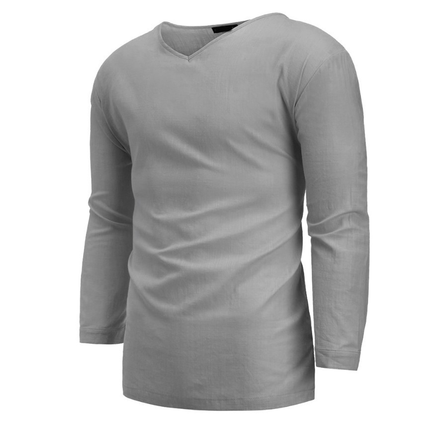 Top holgado informal de cuello en V de algodón y lino con manga larga
