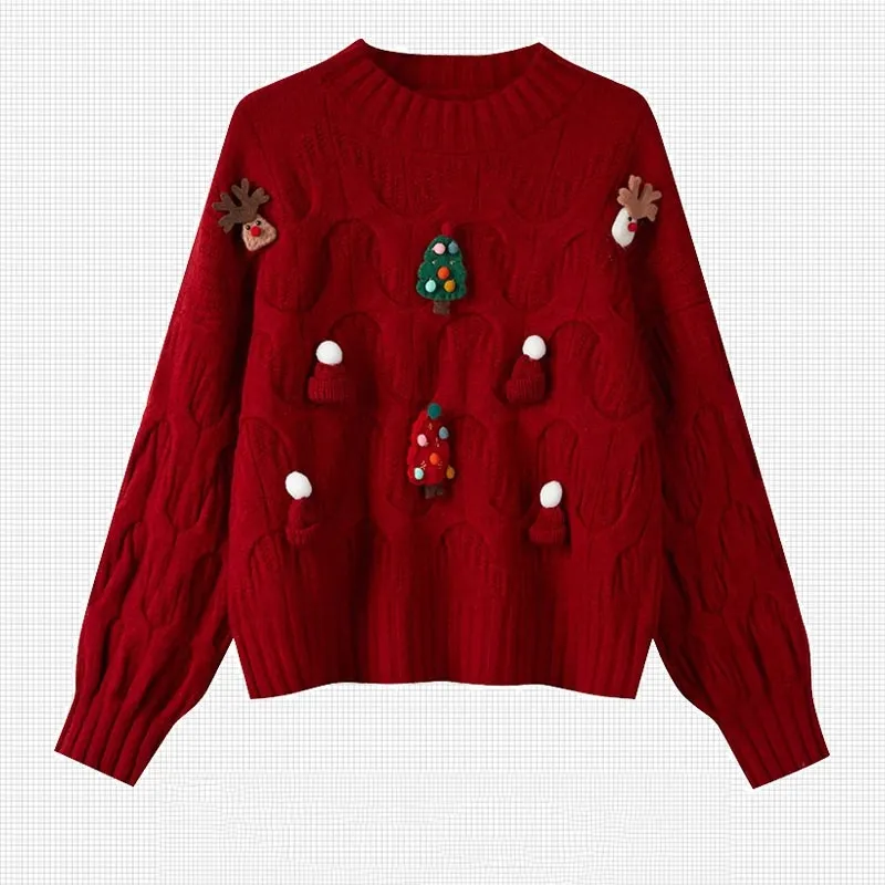 Ya sea que organices un brunch navideño o vayas a una reunión familiar, este top navideño tridimensional añade un toque divertido y festivo a tu conjunto navideño. Sus diseños intrincados, su tejido de punto acogedor y sus colores vibrantes se combinan para convertirla en una pieza destacada para la temporada.