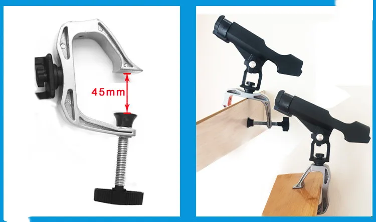 G Clamp mount made from aluminium with steel pressure screw. Clamp-on system that adjusts to a range of rail thicknesses and it is wide enough to slip over the boa rails/gunnel/side(Clamp Max.opening1-3/4 inch).