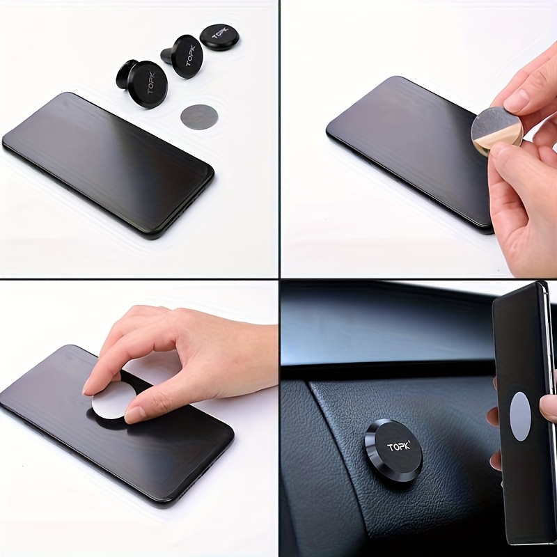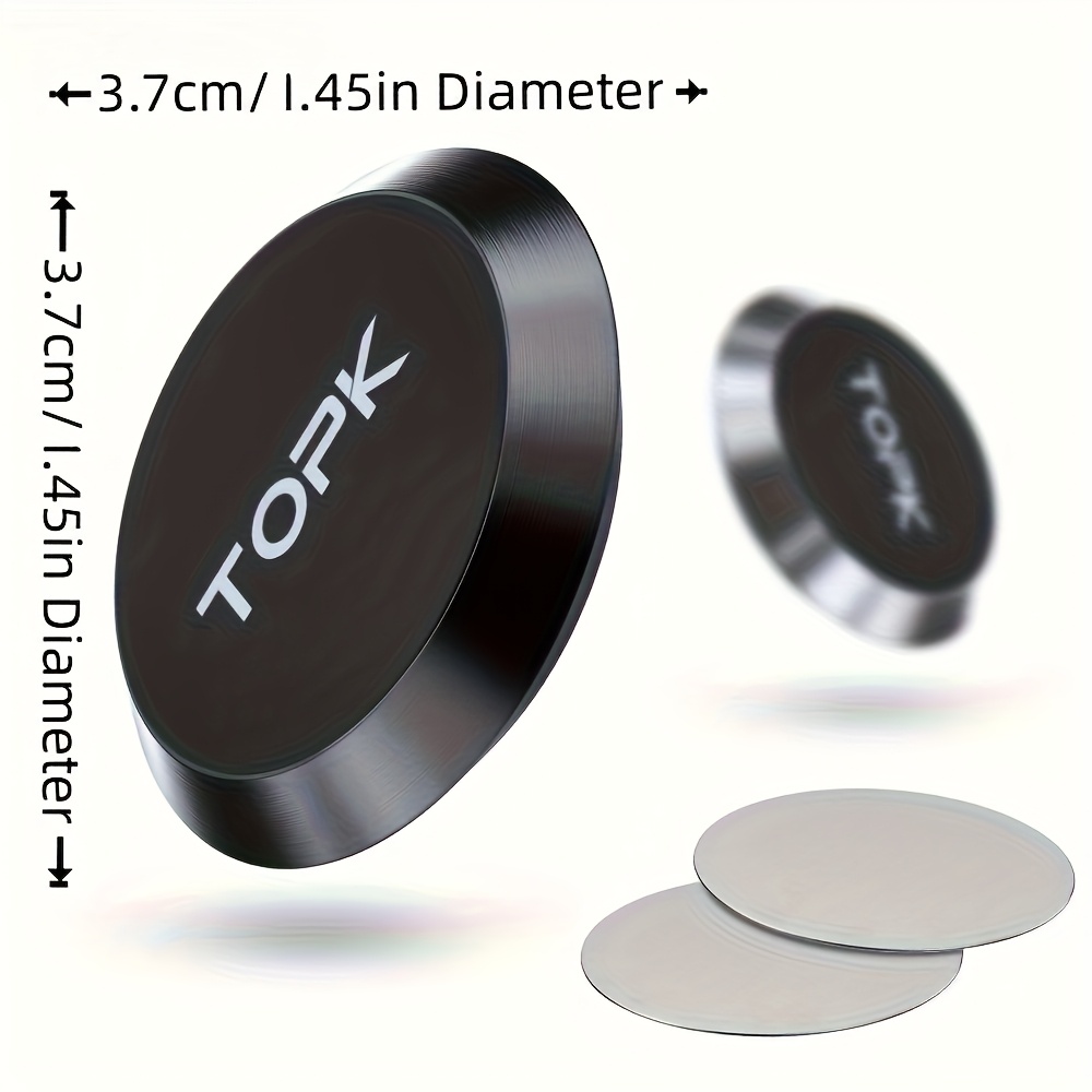 TOPK 360° Free Rotation Magnetic Car Phone Holder Stand – Universal Flat Stick-on Dashboard Holder with Metal Plate