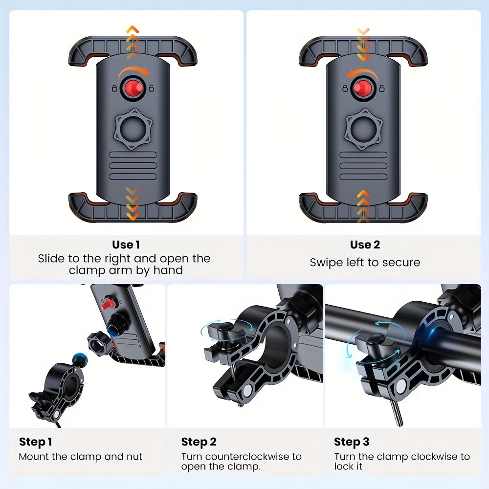 Perfect for cyclists and motorcyclists, this versatile phone mount offers secure attachment and 360° rotation, ensuring convenient access to your smartphone during rides on bikes, mountain bikes, and scooters.