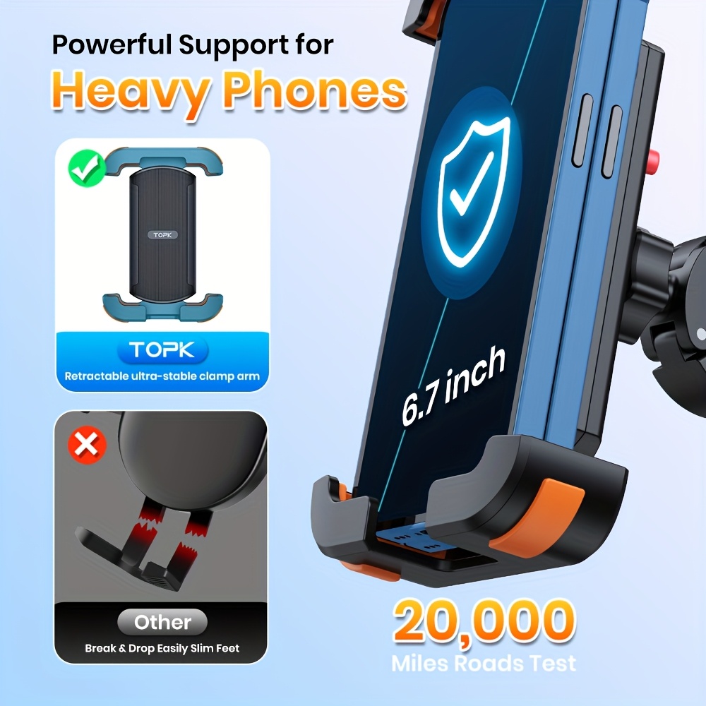- Secure Grip: The mount features a strong, secure grip to keep your phone in place, even on bumpy roads, rough terrain, or during quick accelerations, ensuring your device stays safe.