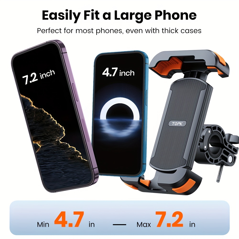The TOPK Bicycle Phone Mount offers a unique combination of versatility, security, and convenience for cyclists, motorcyclists, and scooter riders. With 360° rotation, universal compatibility, and a secure grip, it provides the perfect solution for safely and conveniently mounting your phone while riding. Whether you're navigating a busy city street, exploring nature on a mountain bike, or cruising on a scooter, this mount ensures that your phone stays securely in place, making it easier to access important features during your ride.