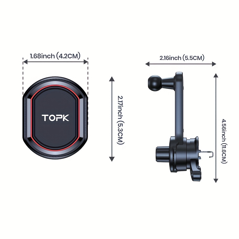 The TOPK D37T Magnetic Car Phone Mount is designed to provide a secure and stable holding solution for your smartphone while driving. Equipped with a powerful magnetic base, this mount provides a strong grip that ensures your phone won’t slip or slide, even during fast accelerations or bumpy roads. The 3-point support system adds extra stability, preventing any wobbling or movement of your device.