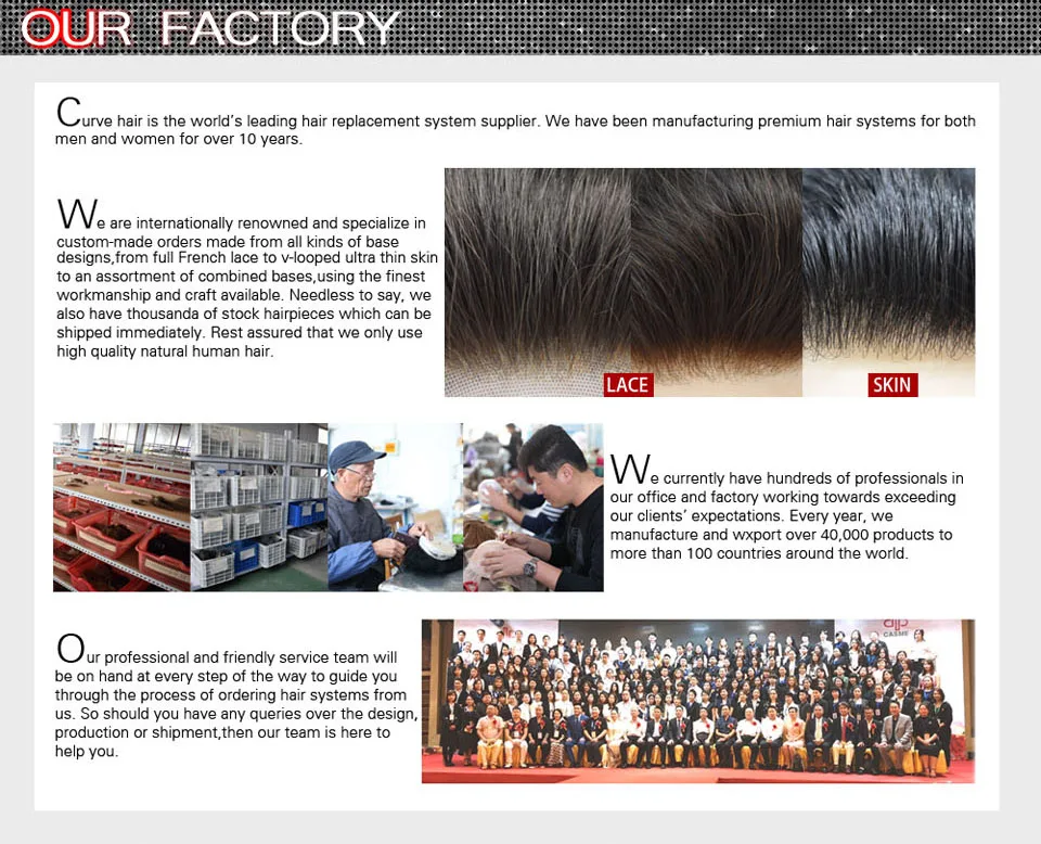 It has a 0.06mm ultra thin skin base,transparent,light and comfortable.It's the thinnest skin on the market.Due to the ultra thin skin,the hair system usually last about one month.So we recommend you to order multiple pieces at a time.You will have new hair every month and no need to do maintenance for the hair system