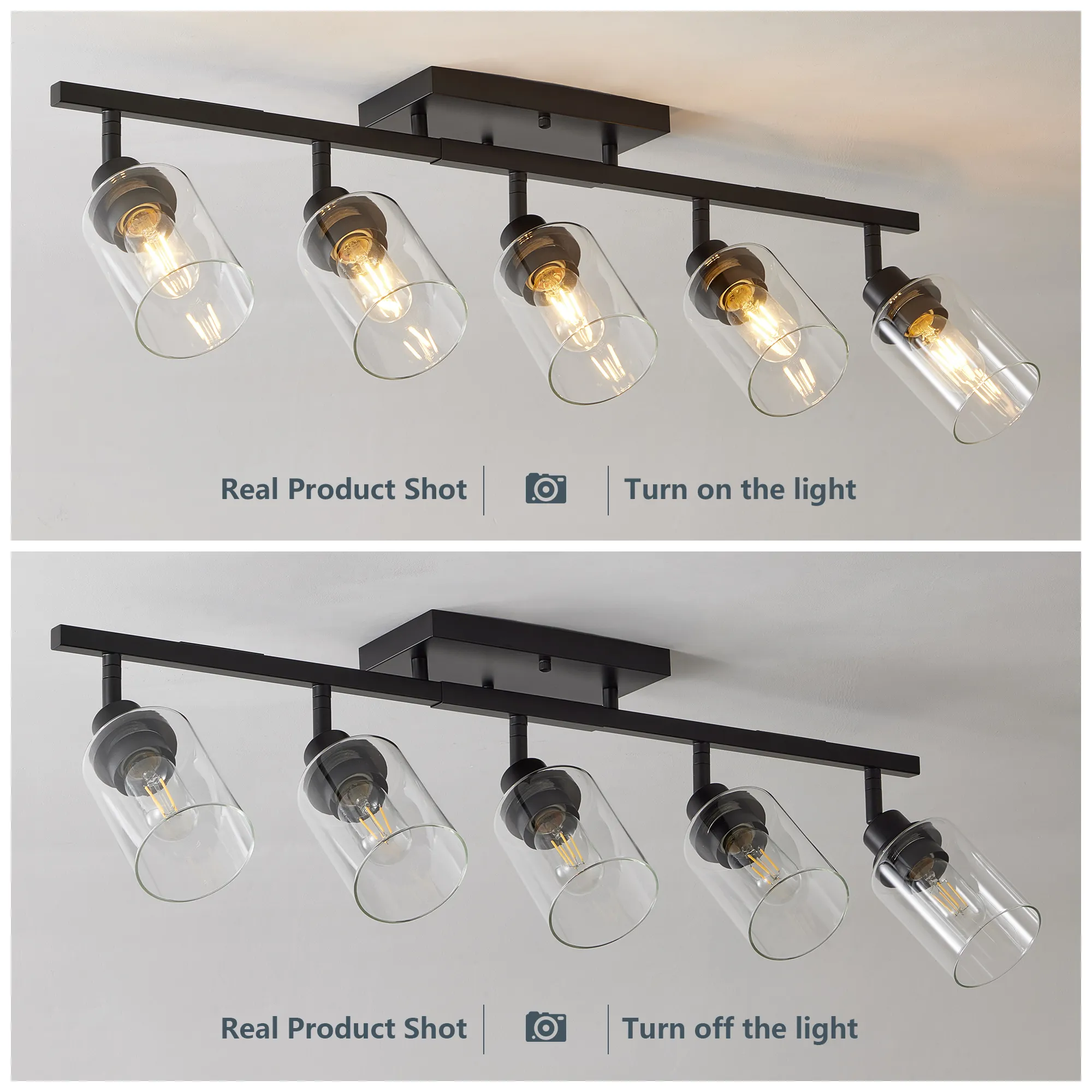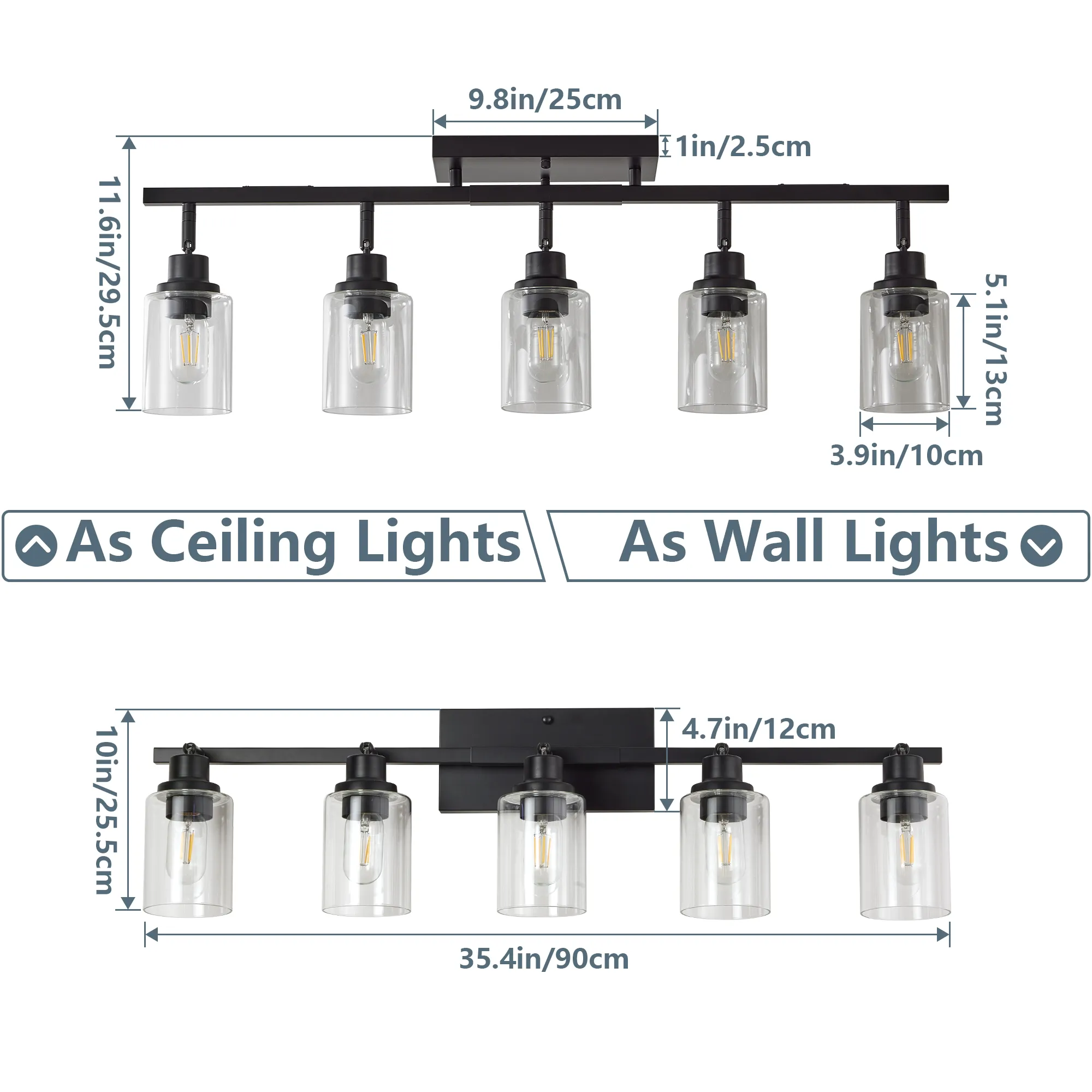 Product Name:5-Light Track Lighting Kit Black Track Lighting Fixtures Bathroom Wall Sconces Ceiling Mount Kitchen Tracking Lights, Rotatable Spotlight with Clear Glass Shade for Kitchen Shop Hallway