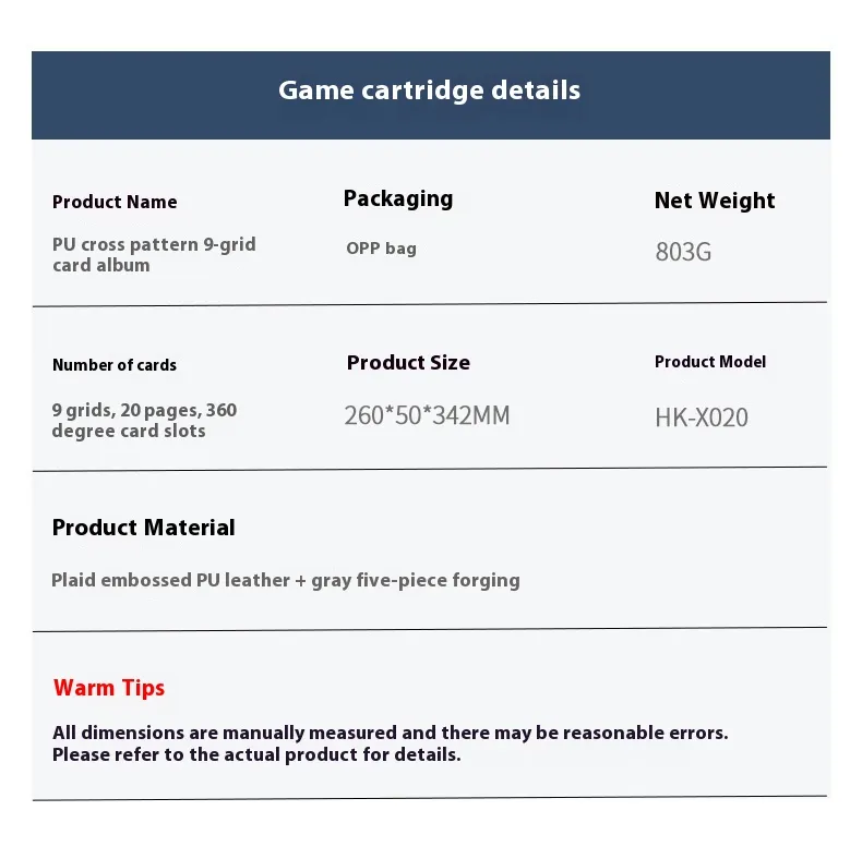 Specifications: Cross pattern PU Card Binder-9 grid 360 pages-black