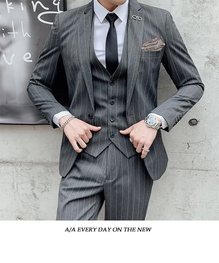 Traje a rayas para hombre, estilo coreano, pequeño, traje de negocios profesional