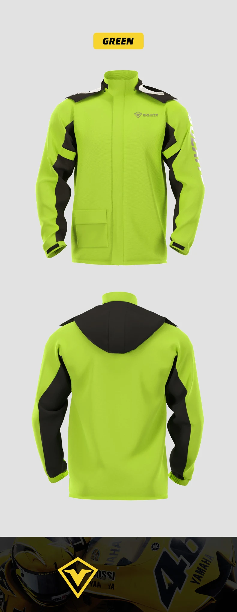 Perfecto para uso personal o como un regalo considerado, este traje impermeable proporciona tanto estilo como funcionalidad, asegurando que estés listo para cualquier condición climática. Agregue el traje impermeable para motocicleta SULAITE a su equipo y experimente la comodidad y protección que brinda en cada dÃa lluvioso.