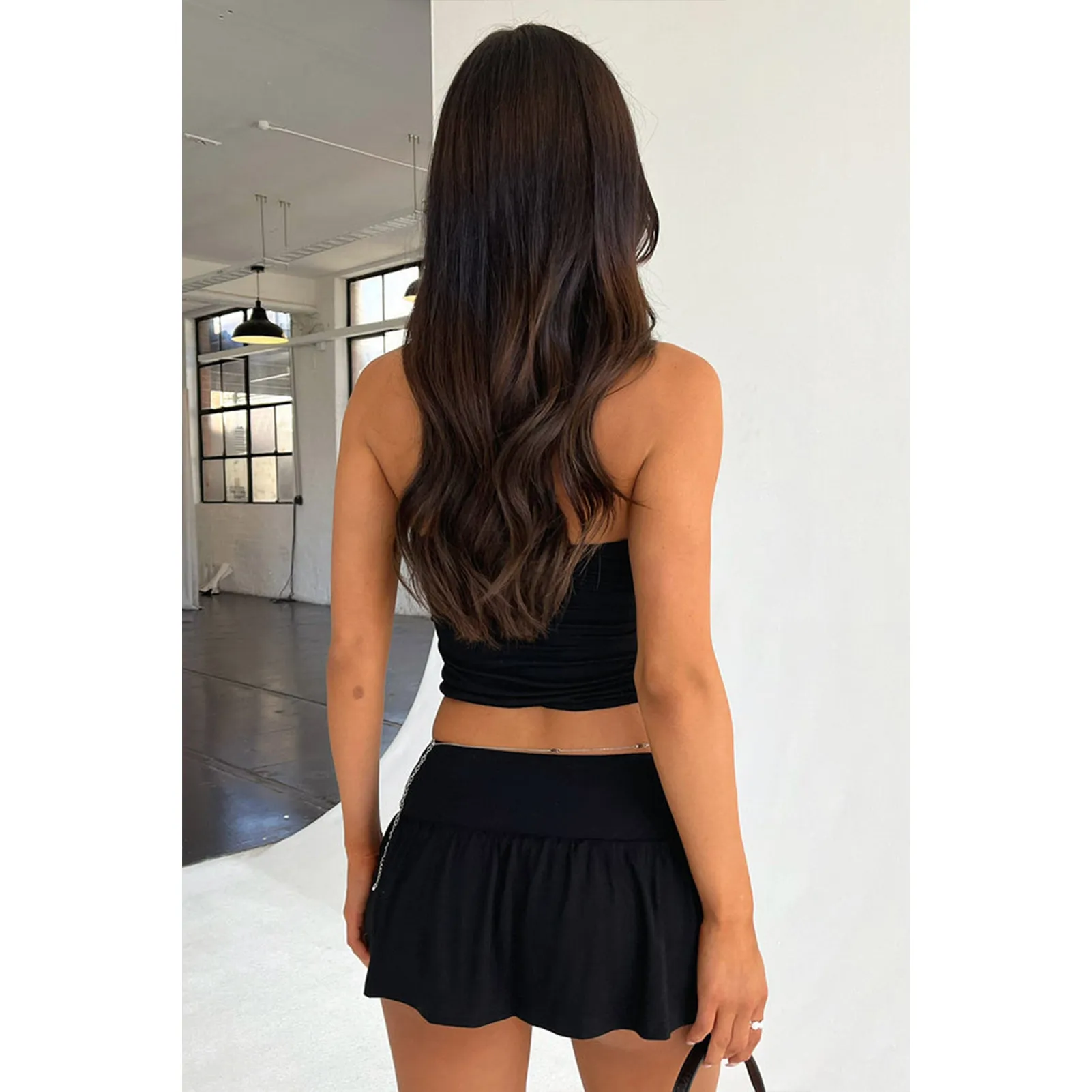 • (Estilo) Este conjunto de falda Y2K incluye un top corto sin tirantes que realza el busto, un corte ajustado con tirantes fruncidos y una minifalda con pantalones cortos forrados de doble capa para una cobertura moderada.