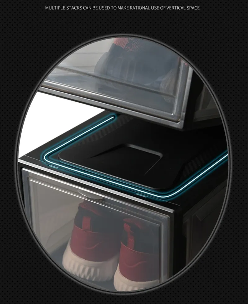 Another major feature of Transparent Shoe Storage Organizer Boxes is their stackable design. The boxes are built to stack securely on top of one another, allowing users to create vertical storage systems. This vertical stacking helps maximise available space in closets, wardrobes, and entryways.