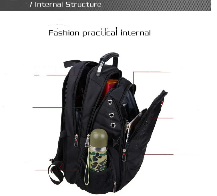 The Travel Outdoor Backpack offers a large main compartment with multiple pockets and zippers, providing enough space for your essential items such as clothing, snacks, water bottles, and electronics. It also includes smaller compartments for organizing your keys, wallet, phone, and documents, making it easier to access what you need during your journey. The well-organized interior ensures that your gear stays neatly packed and easily accessible.