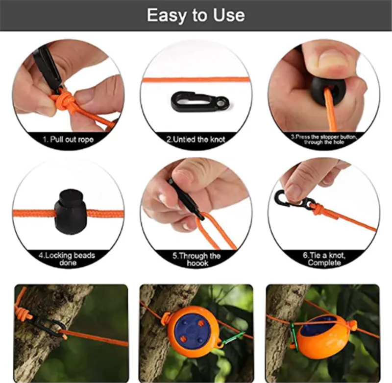 This travel portable clothes line is designed for convenience, flexibility, and ease of use. It allows you to quickly set up a drying space wherever you are, making it perfect for travel and outdoor adventures. The lightweight and compact design means it can be easily packed into your bag without taking up much space.