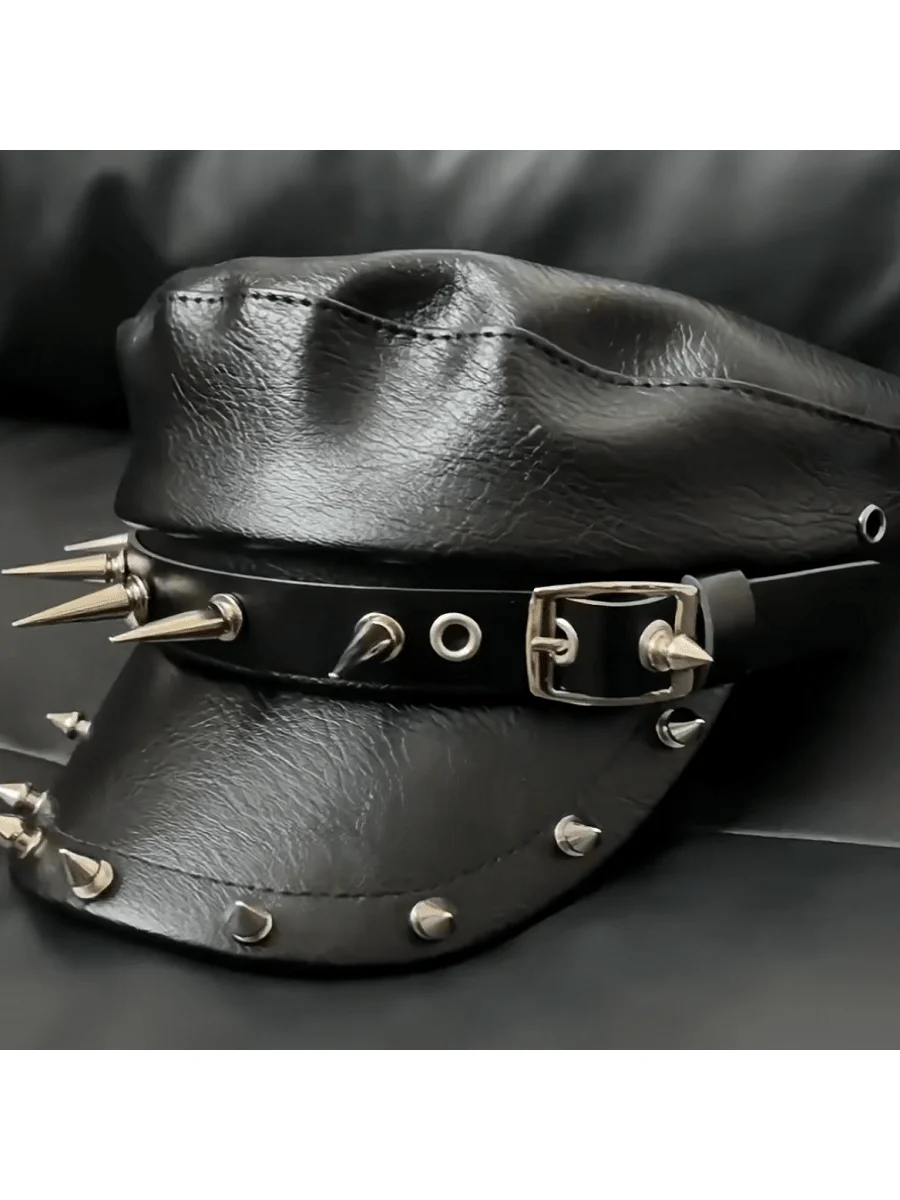 This hat features bold rivet detailing that brings a distinct punk flair to your outfit. The rivets add an edgy and rebellious vibe, making it a perfect accessory for those who love to push fashion boundaries.