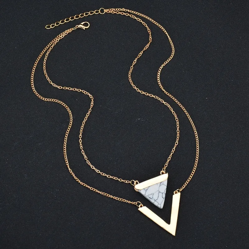 Triangle Turquoise Pendant Necklace V-shaped