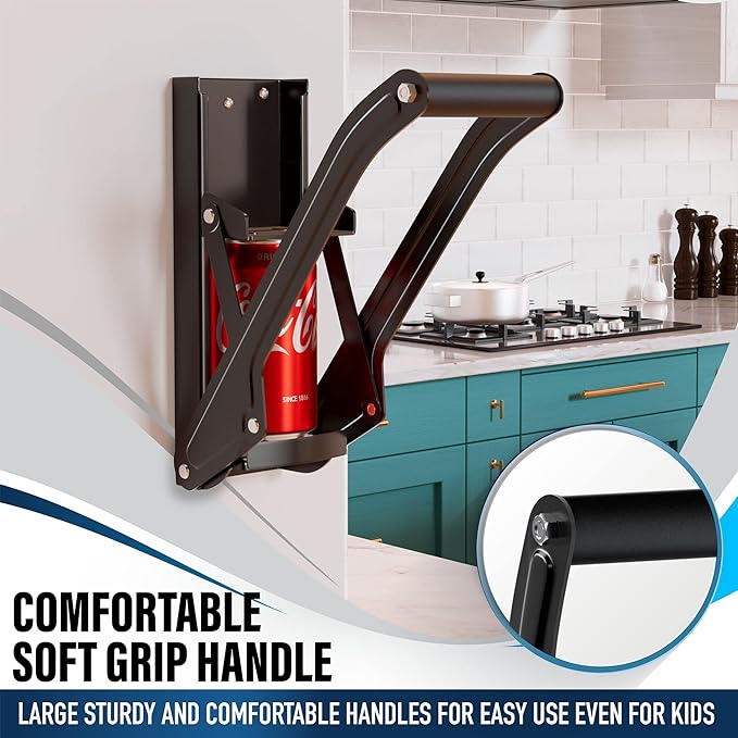 - DISEÑO: Herramienta de extracción con agarre suave, fácil y segura, que comprime completamente el metal a aproximadamente el 20% de su tamaño original, ahorrando valioso espacio de almacenamiento. Botella de regalo. El abridor se encuentra en la parte inferior de la herramienta para facilitar el acceso. Se instala verticalmente en los montantes de la pared con los tornillos incluidos.
